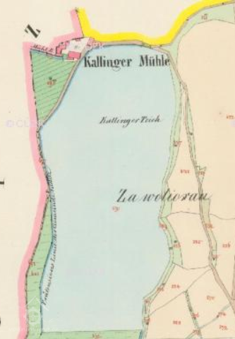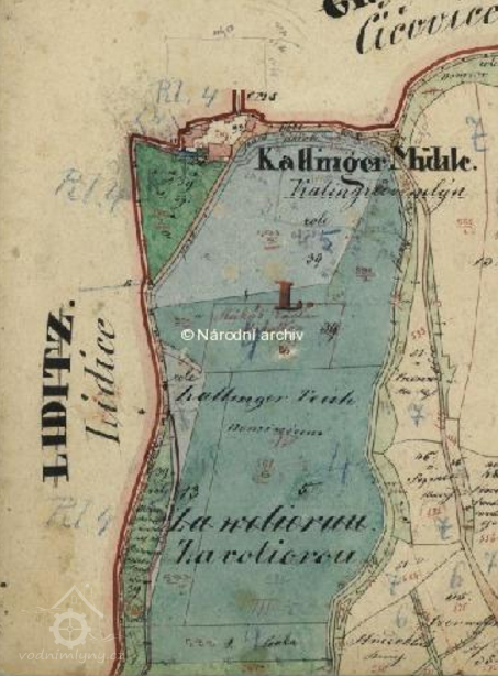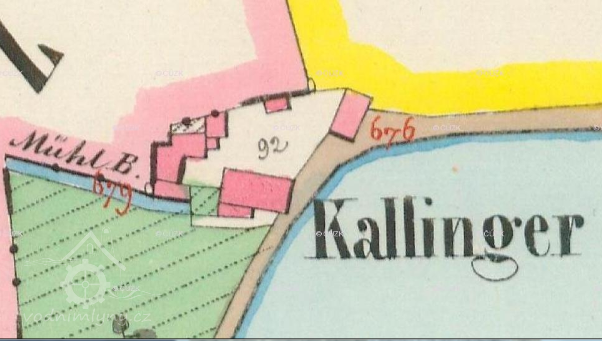 1730 gruntovní kniha Středokluky|: "grunt 11, mlýn Kučerovský, jest to památný mlýn Kalingrovský, zvaný dříve Podrybnický, nebo Větší či Dolejší, ale i Čtrnáctých"