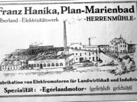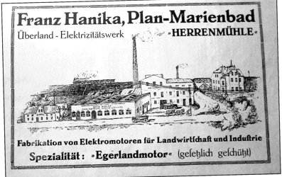 V roce 1904 koupil mlýn Franz Hanika, který je považován za průkopníka elektrifikace v Plané a okolí. Založil zde strojírenský podnik a malou elektrárnu. Nechal zde instalovat turbínu a mlýn změnil na elektrárnu, která zásobovala elektřinou město Planá a od roku 1911 také Chodská újezd, Horní a Dolní Jadruž.