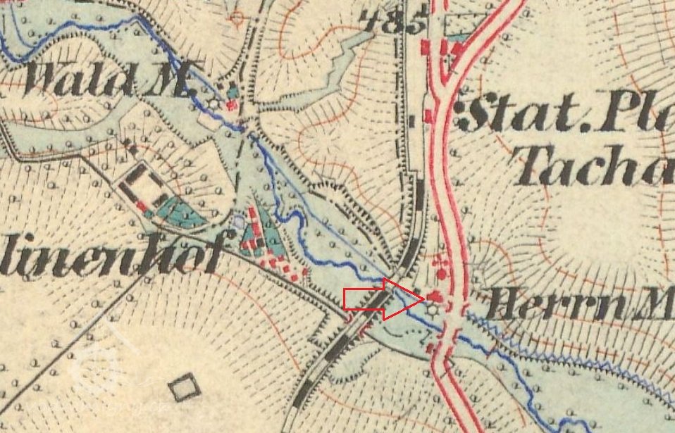 V druhé polovině 19. století je zde stále rodina Nahrhaftů. Mlýn měl tehdy 4 vodní kola, která poháněla 3 mlýnská složení a krupník. Při mlýně stála také pila.