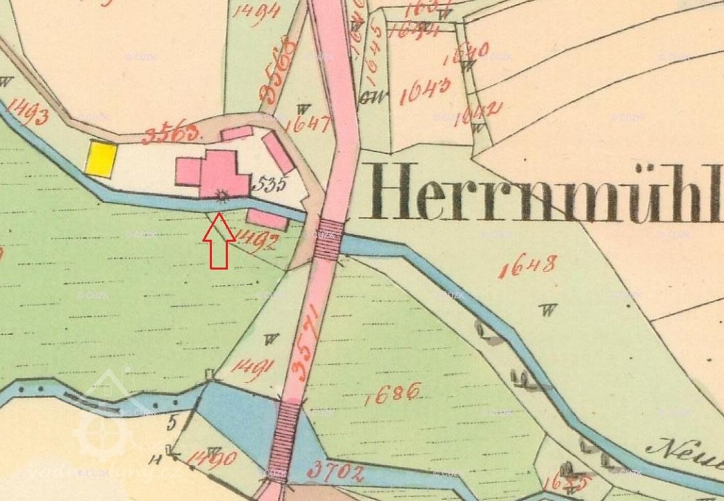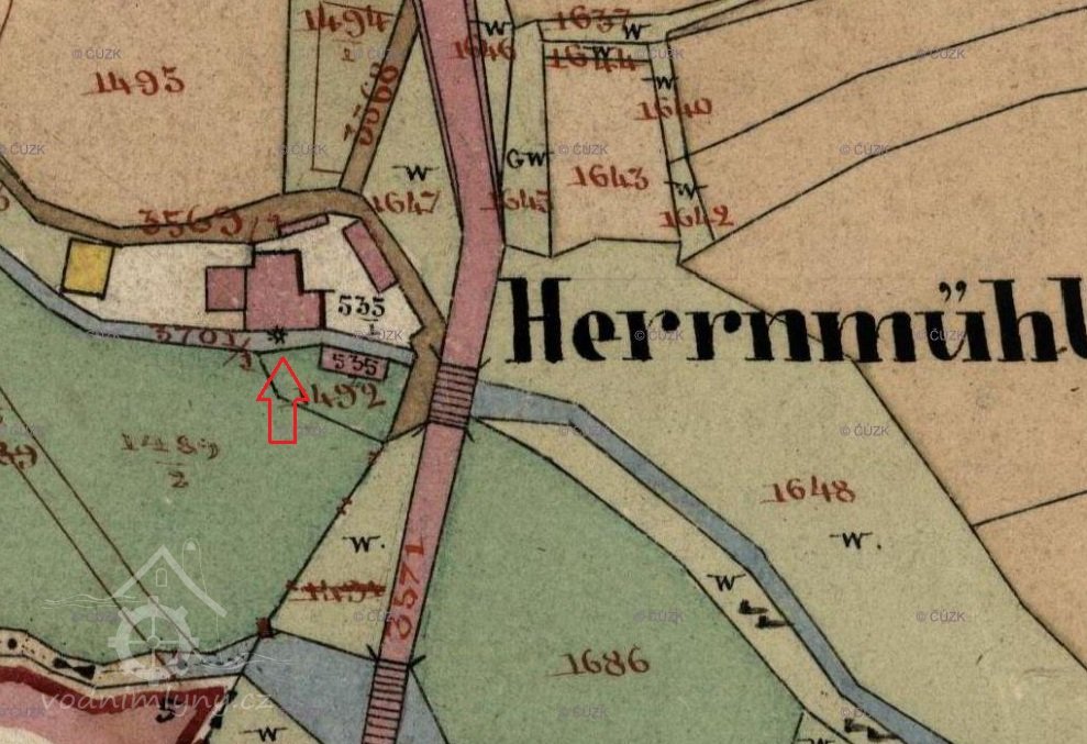 V roce 1876 byl u mlýna osazen vodní cejch s označením A.N. 1876. Iniciály se vztahovaly na nezletilého Andrease Nahrhafta, kterého majitelka zastupovala. V roce 1886 dal Andreas Nahrhaft přestavět lednici mlýna, v níž byla umístěna 3 vodní kola původně poháněná na spodní vody. Po přestavbě byly nad kola umístěny vantroky se šoupaty a kola byla upravena na vrchní vodu.