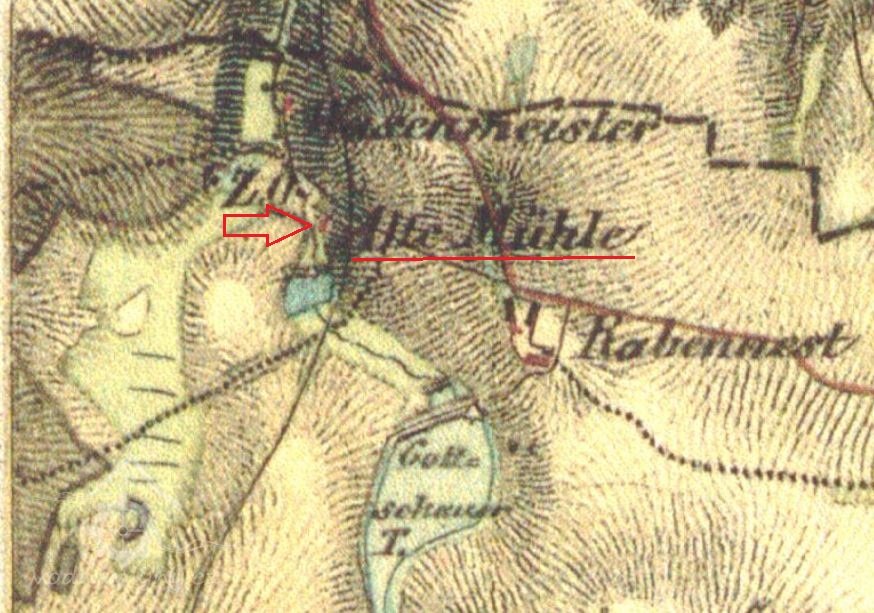 V roce 1833 je zaznamenán název Rabenöst Mahlmühle.