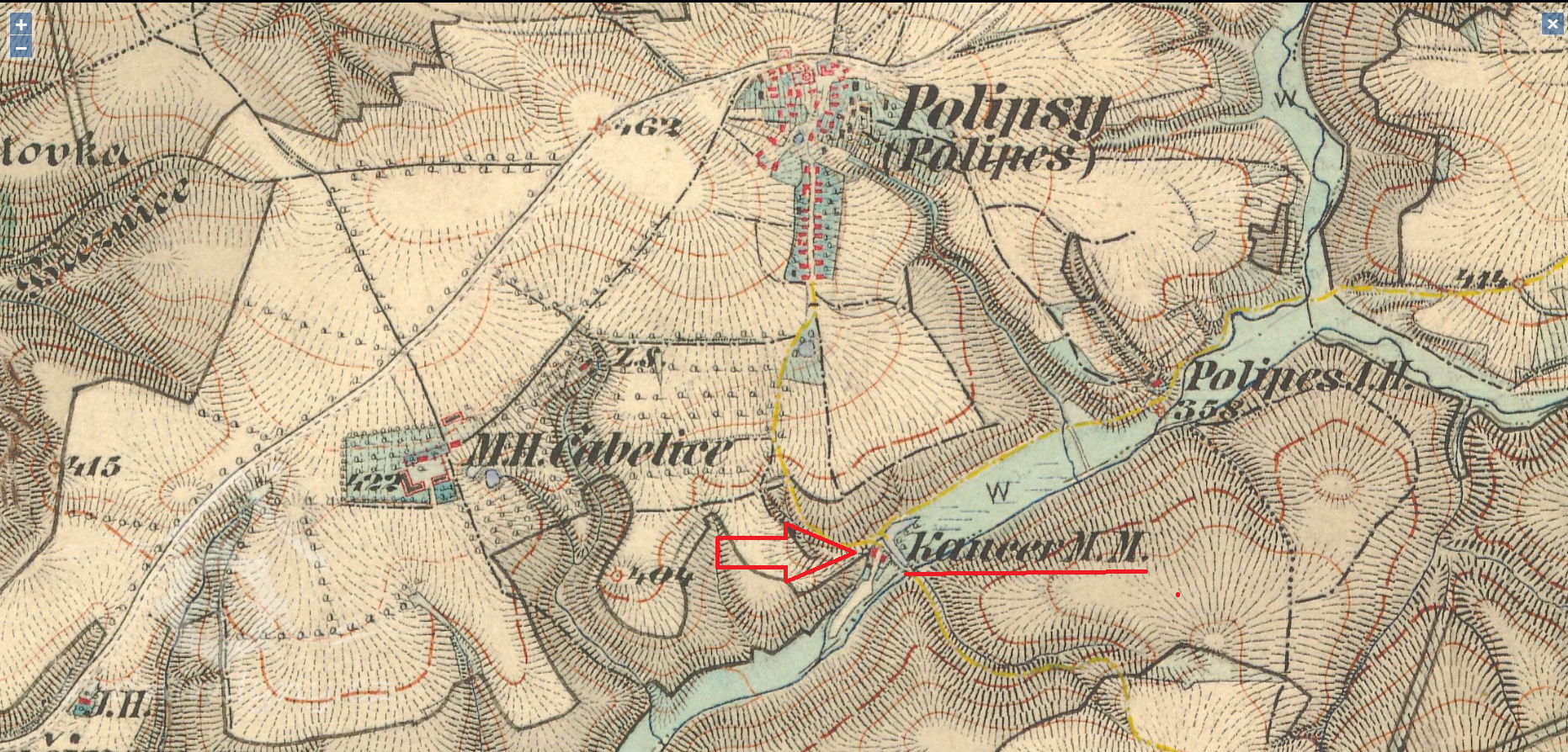 1714 součást majetku kácovského panství - mlýn s jedním složením a pilou