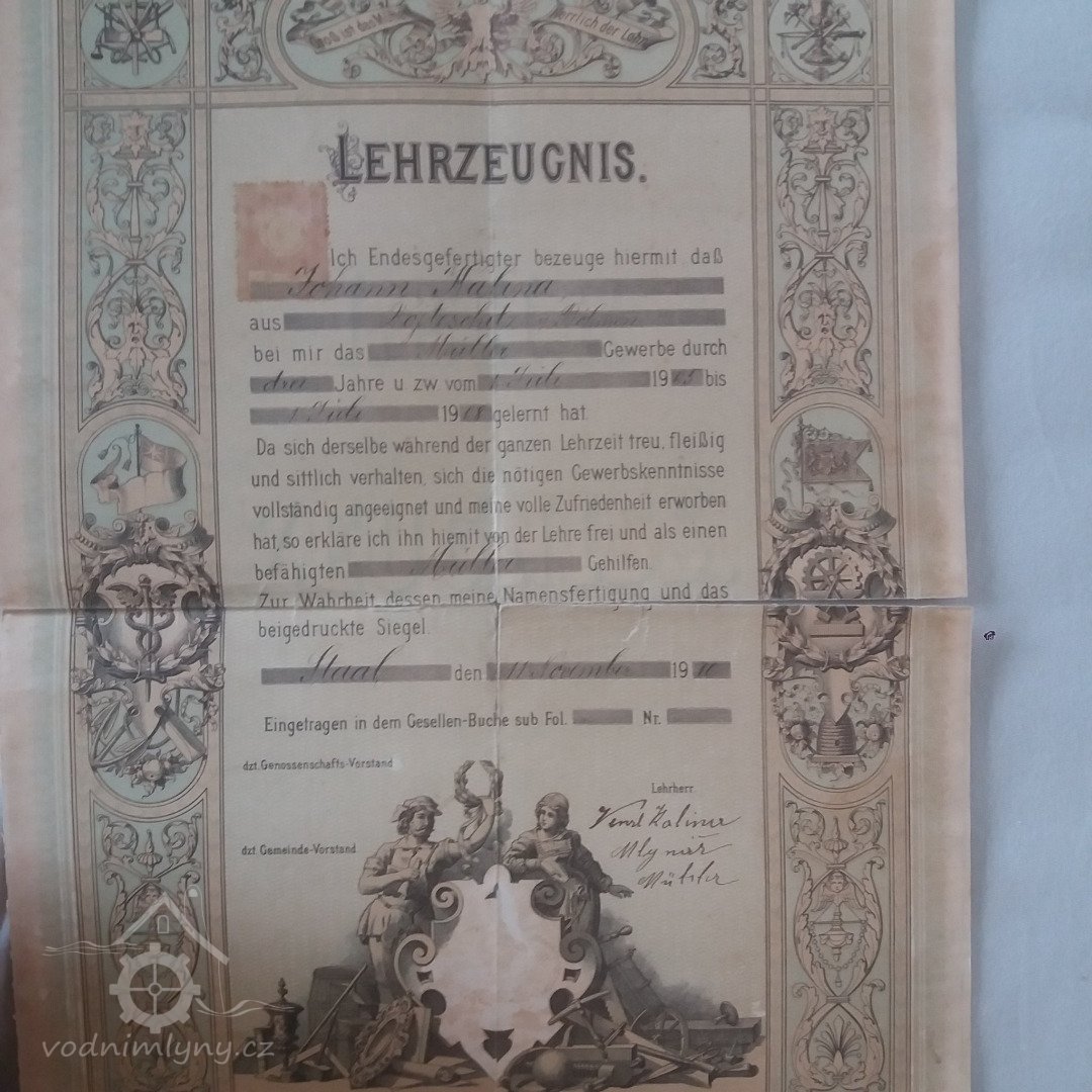 V pozemkových knihách najdeme poznámku datovanou 21. 4. 1857, kdy mlýn vlastnila Theresia Höschl.