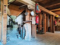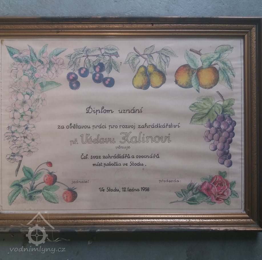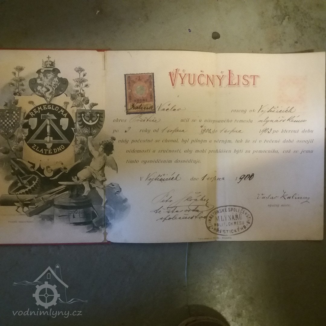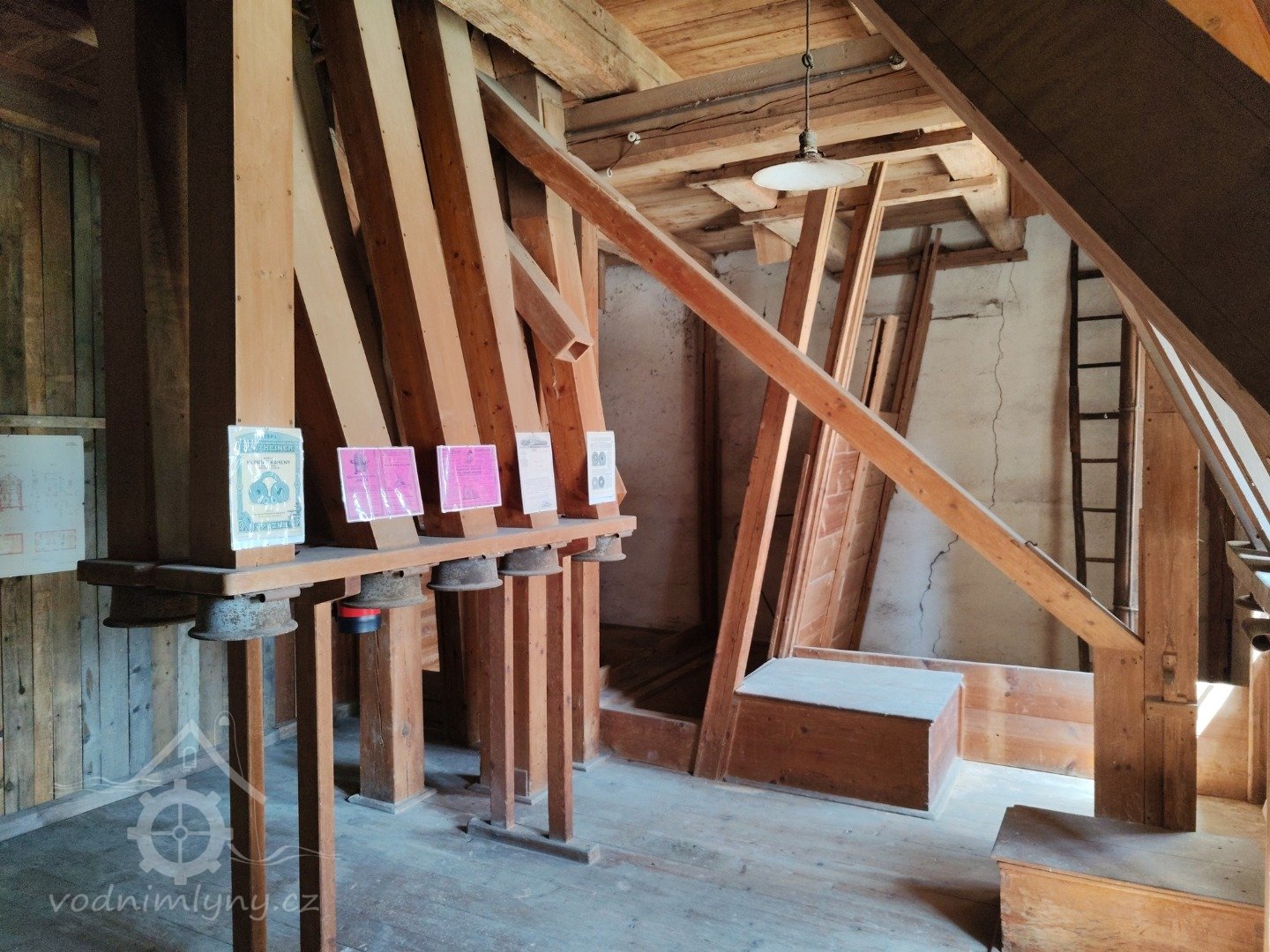 Jediným vybavením mlýna bylo jedno složení s pískovcovým kamenem zvaném „český kámen“, mlelo se přes pytlík a vše se muselo vynášet v násypkách nahoru na koš. Samozřejmě nechybělo vodní kolo a jednuška, což byla jednolistá pila na výrobu např. prken. Později V.Kalina koupil francouzský kámen na semílání žita a pšenice.