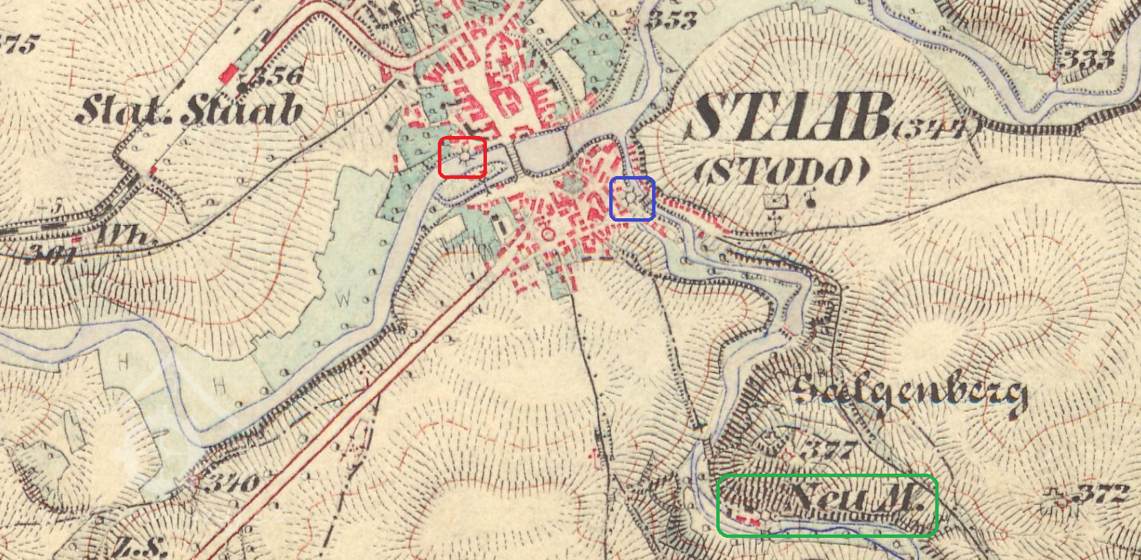 Roku 1556 získal mlynář Jakub Suchý od obce Stodu (Staab) stavební pozemek a pole u potoka (dnešní Merklínka), aby vybudoval mlýn. Suchý svůj plán v krátké době uskutečnil a položil tak základní kámen k panskému mlýnu. Při přidělování stavebního pozemku si obec vyhradila předkupní právo ke koupi mlýna (v případě, že by Jakub chtěl mlýn prodat). To se také stalo a roku 1563 přešel do majetku obce Stodu.