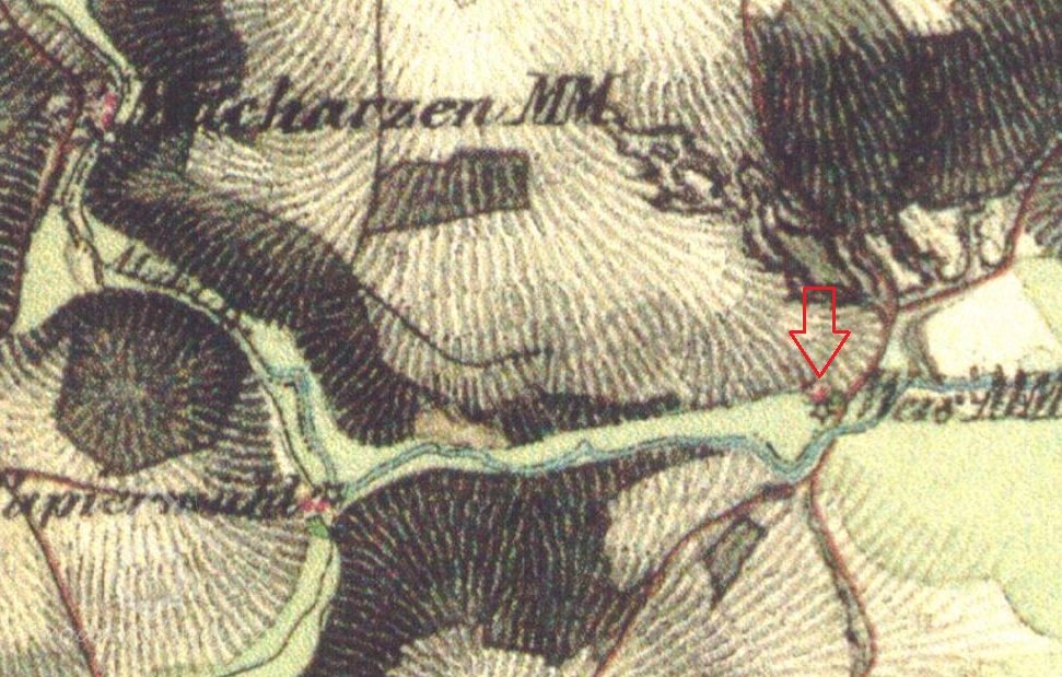 V roce 1804 zde hospodařil na emfyteutických pozemcích Michl Zucker, mlýn měl 2 moučná složení a ležel na nestálé vodě. Mlynář platilo vrchnosti ročně 9 zlatých 36 krejcarů a 1 strych pšenice. Stabilní katastr uvádí v roce 1839 Michaela Zuckera, patrně se jedná o stejného mlynáře jako v roce 1804.