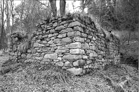 Na leteckém snímku z roku 1957 jsou viditelné již jen obvodové zdi.
