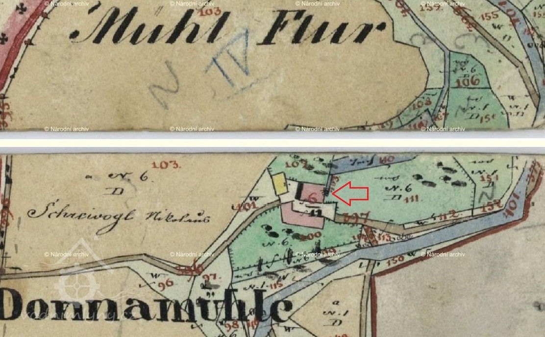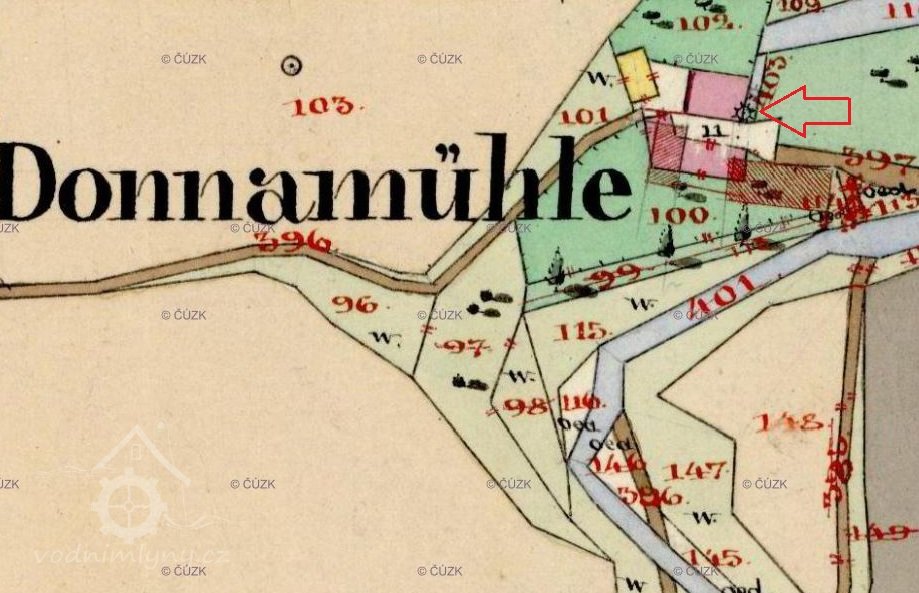 V 2. pol. 18. století hospodařil v Donnamühle mlynář Christian Schneider (narozen roku 1730) s manželkou Catharinou. V roce 1766 je v matrice obce zápis o křtu jejich dcery Cathariny. Zemřel 9. 3. 1784 ve věku 54 let.