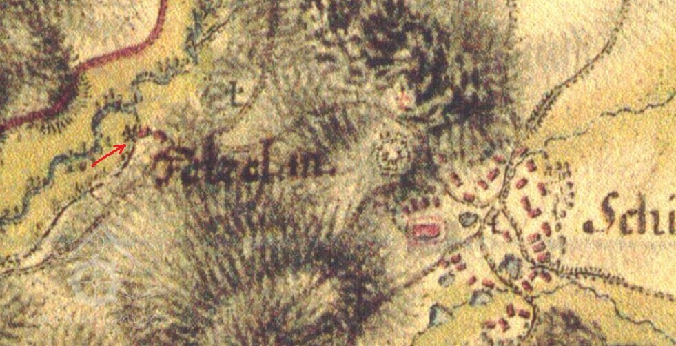 Z rozměrné stavby se zachovaly zbytky zdiv. Patrová budova o rozměrech 15 x 30 m byla rozdělena na 3 oddělení. V okolí stavby i v jejích zříceninách se objevuje hlína promísená červeným brusným práškem. Z tzv. zámečku, položeného na terénní hraně blíže šitbořské cesty, zbývá pouze zvlněné místo. V blízkosti zámečku stávala kaplička, která byla zbořena společně s budovami mlýna.
