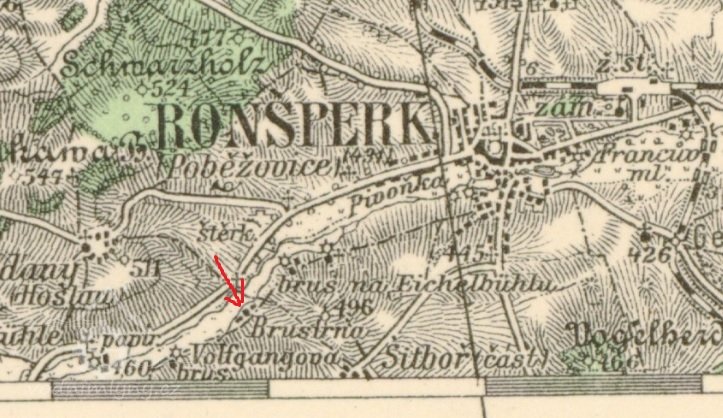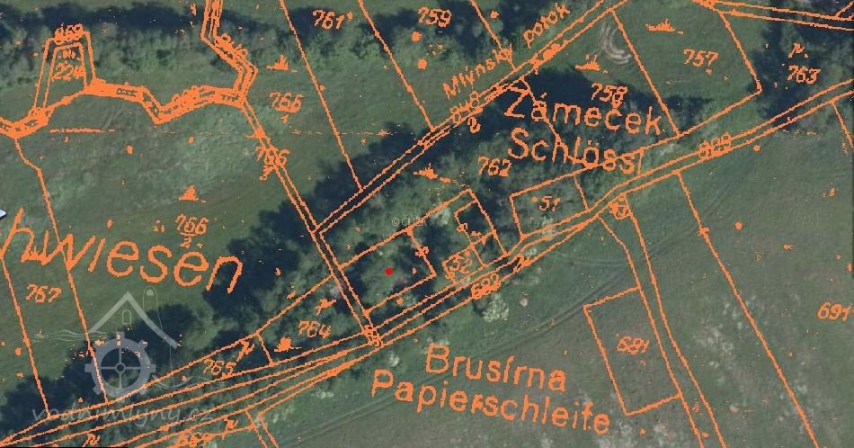 Na leteckém snímku z roku 1958 stojí budova zámečku, brusírna je bez střechy, stojí obvodové zdi, je vidět rozdělení na 3 oddělení.