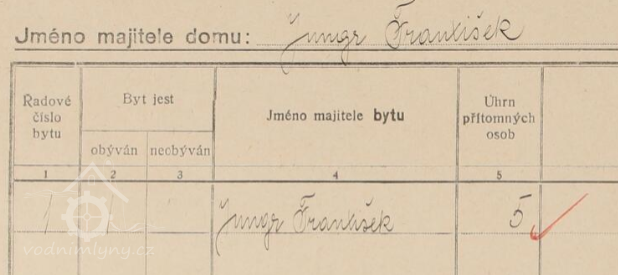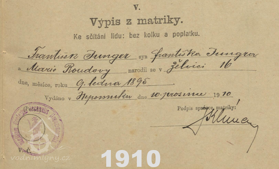1810 František Vaněček s manželkou Kateřinou převzali mlýn oceněný na 1350 zl.