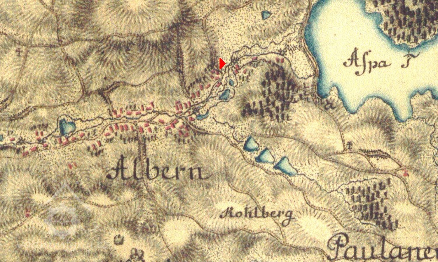 V r. 1778 uveden František Traxler mlynář a obyvatel Albeře  s manželkou Magdalenou, svobodní.