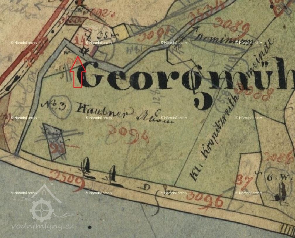 Dle údajů ve stabilním katastru k roku 1838 byl v té době mlýn a Jirský rybník nad mlýnem panský ve vlastnictví knížete Windischgrätze, mlynář zde byl v nájmu. V té době zde byl mlynář Adam Haubner.