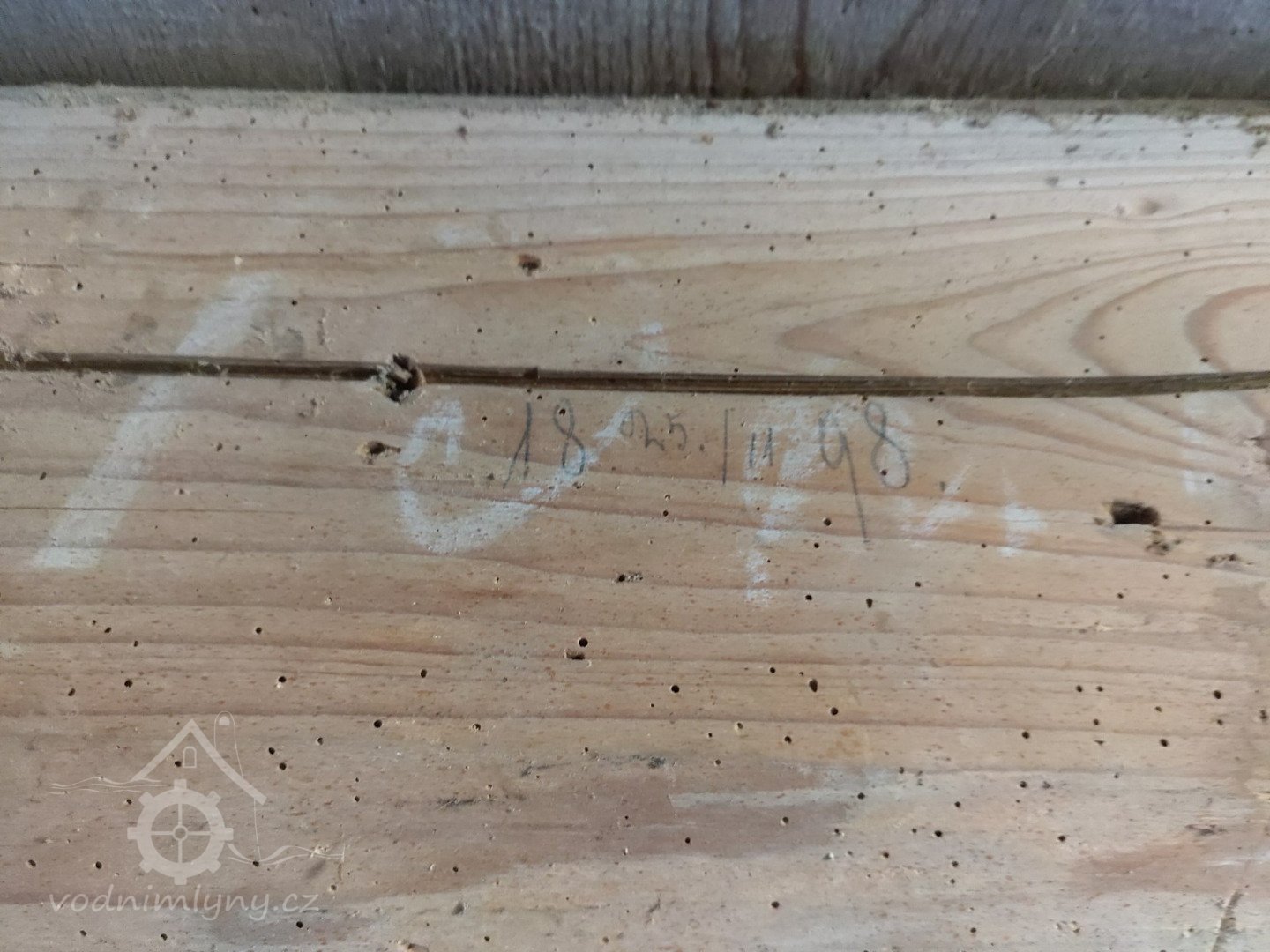 Dendrochronologií bylo zjištěno, že rok smýcení dřeva použité na doposud zachovanou mlynářskou stolici je 1861/1862.Z dochovaných pramenů je možno se dočíst: mlýnice otevřená až pod střechu, opatřená prkennou podlahou a zařízená úplným mlýnským složením na pohon vodním kolem s vrchním náhonem. Mlýn měl krýt potřebu šrotu a mouky ve dvoře. Nad stavením byl krov s ležatými stolicemi. Celý mlýn byl v dobrém stavu v ceně 1632 zl. r.č. Mlýnská lednice se žlabem k pohánění mlýna a zároveň mlátičky v blízké stodole pomocí dvou vodních kol na vrchní vodu je provedena z kamenných kvárdrů v šířce 1 sáhu a 1 stopy. Ke každému kolu vedl vlastní žlab se stavidlem, napájený od odpadní strouhy rybníka Potočného kamenem vyzděným a kamennými deskami krytým náhonem, vedeným v délce 34 sáhů přes hospodářský dvůr. Celé zařízení je použitelné a má cenu 420 zl. r.č.