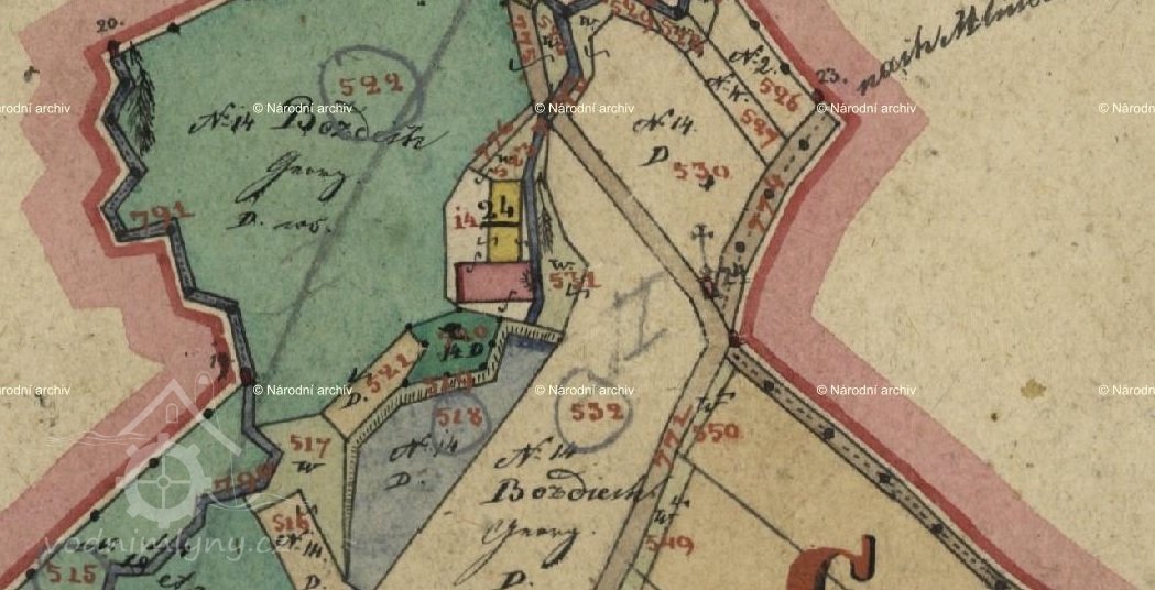 II. vojenské mapování – Františkovo 1836-1852 jako Podgillowsky M. vesnice Gillau. Mlynářem je syn Jiřího Bozděcha Josef *1805. Této rodině patřil mlýn do r. 1841.