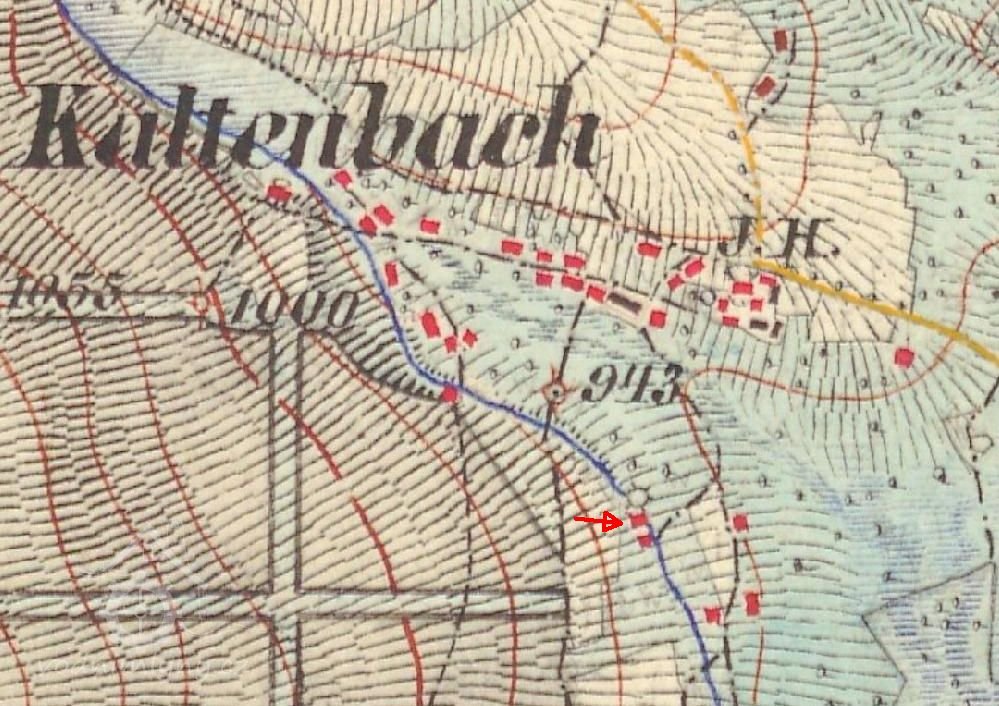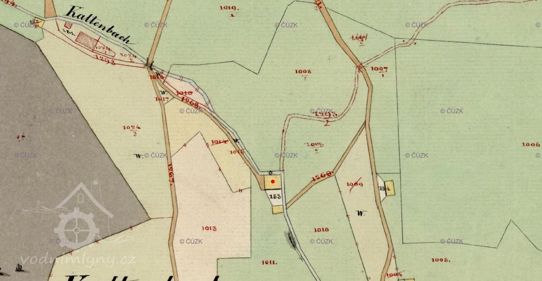 Mlýn ,obytné a hospodářské stavení v k.ú.Nové Hutě,byl zobrazen na mapě Stabilního katastru:Čechy-5273-1 -k.ú.Nové Hutě/Kaltenbach, mapový list 011.