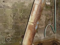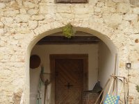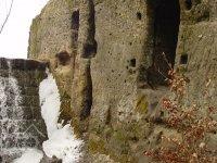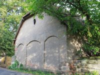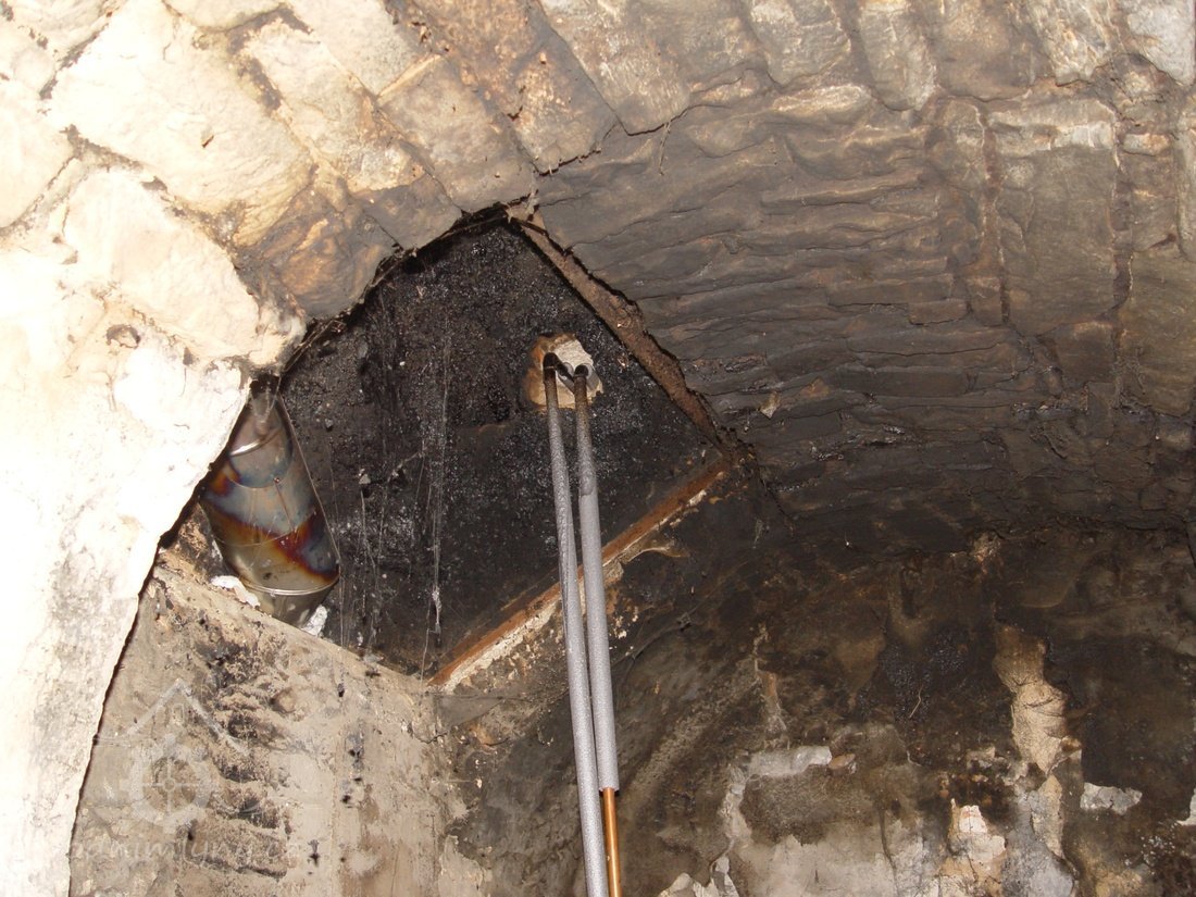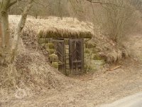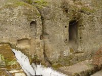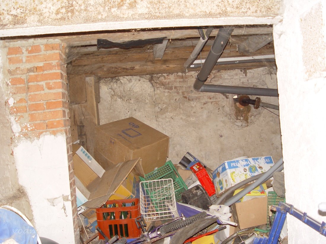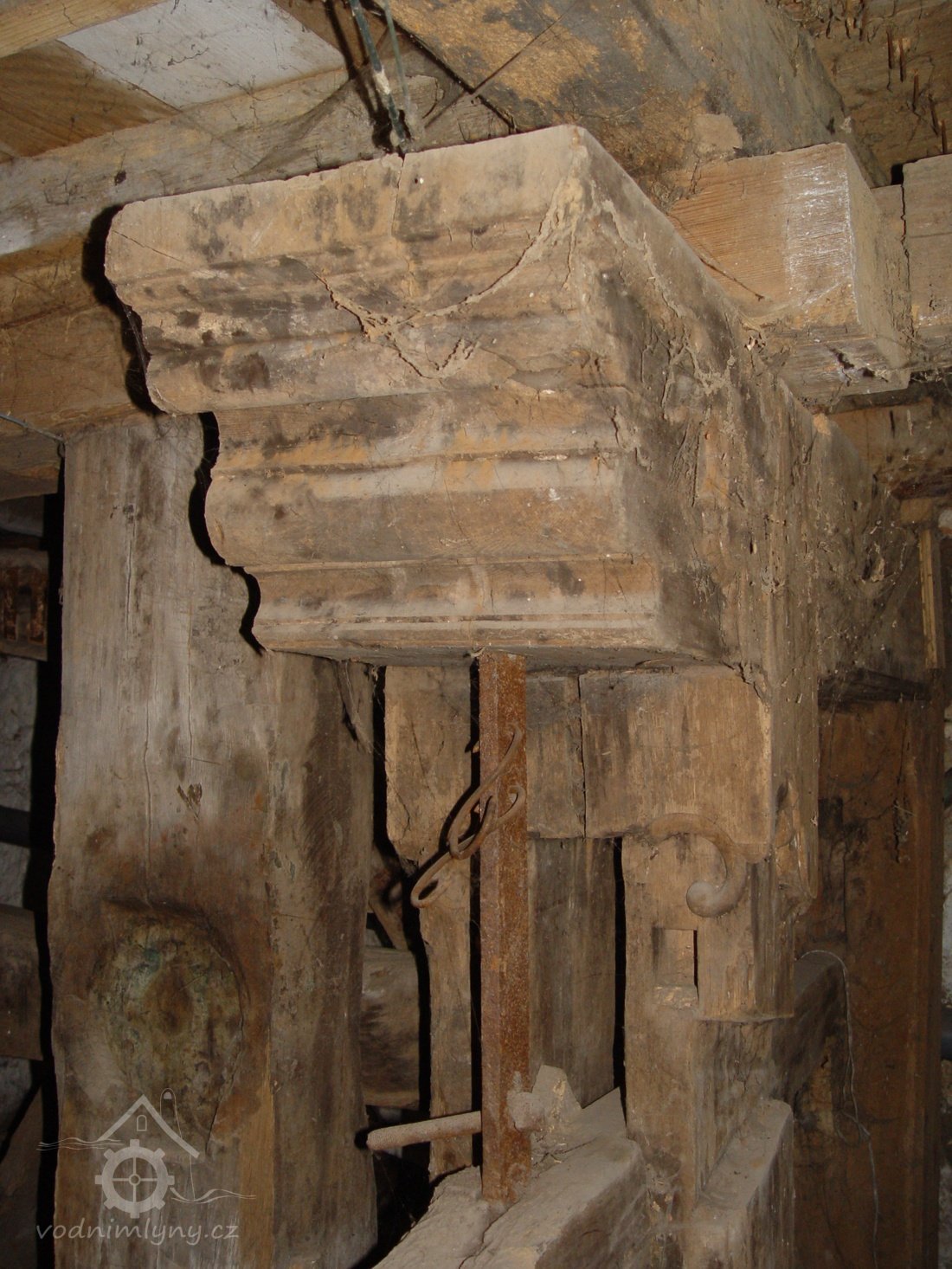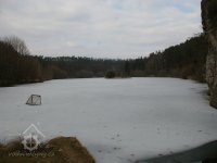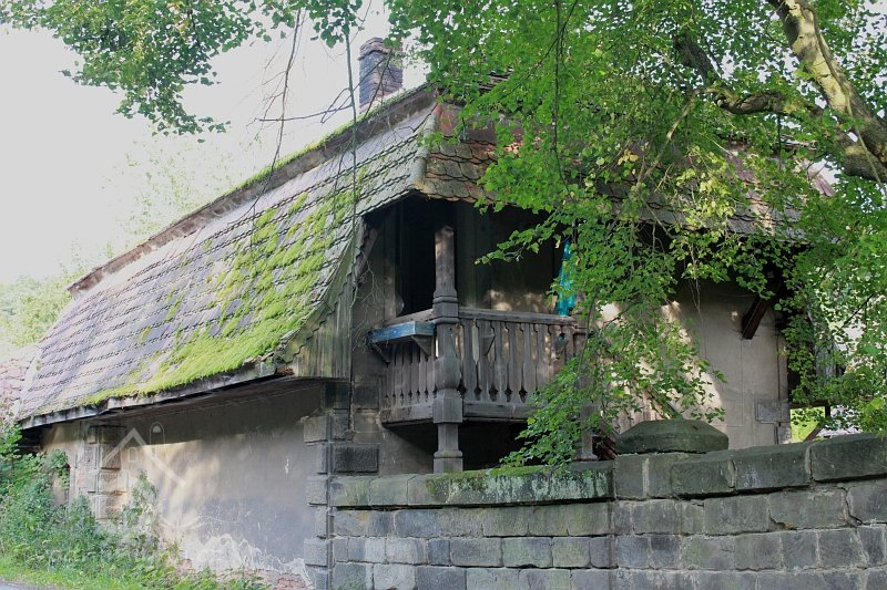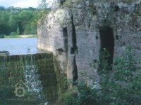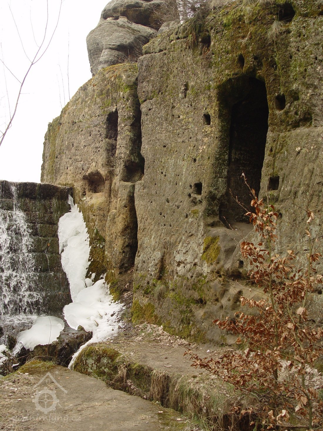 Zděný mlýn leží pod obnoveným rybníkem, jehož výpust má strouhu vysekanou ve skále. Na jejím dně je prosekané obdobné požírací koryto jako na Tuboži. Nad strouhou je vstup do dvou prostor, vysekaných v pískovcovém masivu. První je ve výškové úrovni vstupu, do druhé se sestupuje z první po sedmi schodech. Ve vstupu jsou patrné stopy po zárubních a uzavírání objektu. Jedná se o komoru a níže umístěný sklep, přístupné z protější strany strouhy po dřevěné lávce. Jejich zdánlivě neobvyklé umístění v situaci staveb mlýna je vzhledem k užitému materiálu právě typické, k zahloubení byla využita usedlosti nejbližší pískovcová skála. Způsob práce v lomové stěně i při vysekání objektu odkazuje do pokročilého novověku.