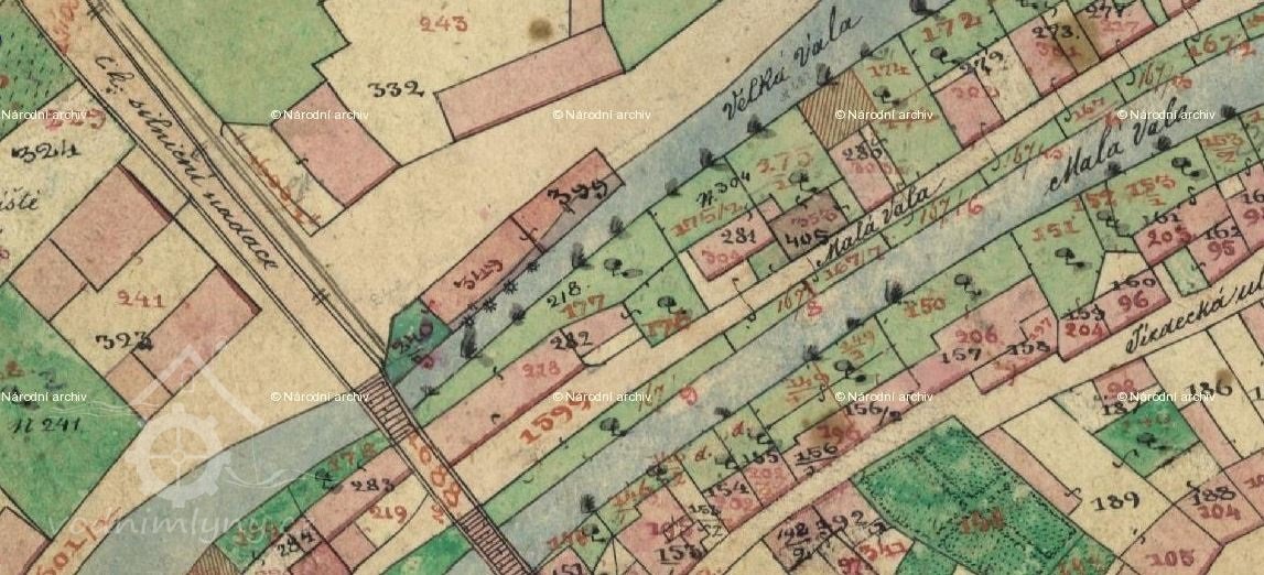 V roce 1855 koupil Josef Mlejnek v Nymburce pozemek, na kterém postavil mlýn Velké Valy. Za dva roky k němu přibylo několik hospodářských stavení (kolna, konírna, sýpka). V roce 1884 byl ve mlýně postaven parní stroj a komín. (MH)