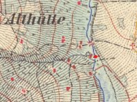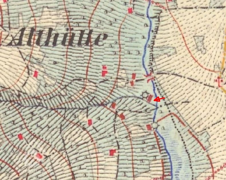 Objekt mlýna je zobrazen na mapě Stabilního katastru:Čechy-5273-1 Nové Hutě/Kaltenbach, na mapovém listu č.008.