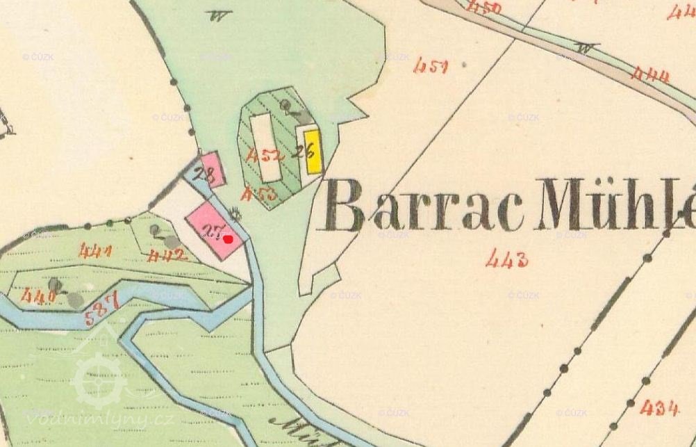 Mlýn zobrazován na mapách I. vojenského mapování.