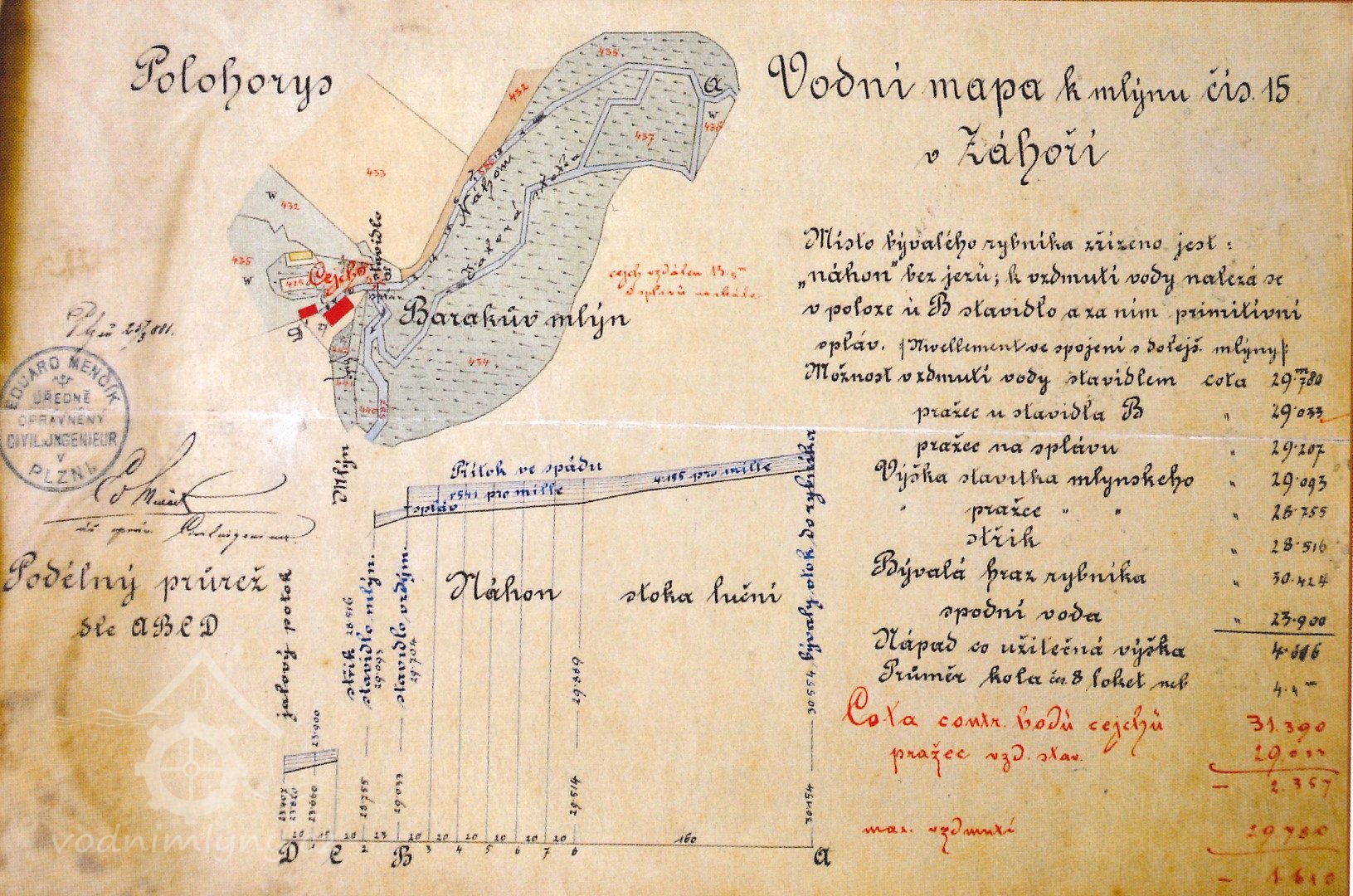 1927 náhon dlouhý 15 m, nad koly vedly vantroky o délce 5 m, šířce 40 cm a hloubce 56 cm.