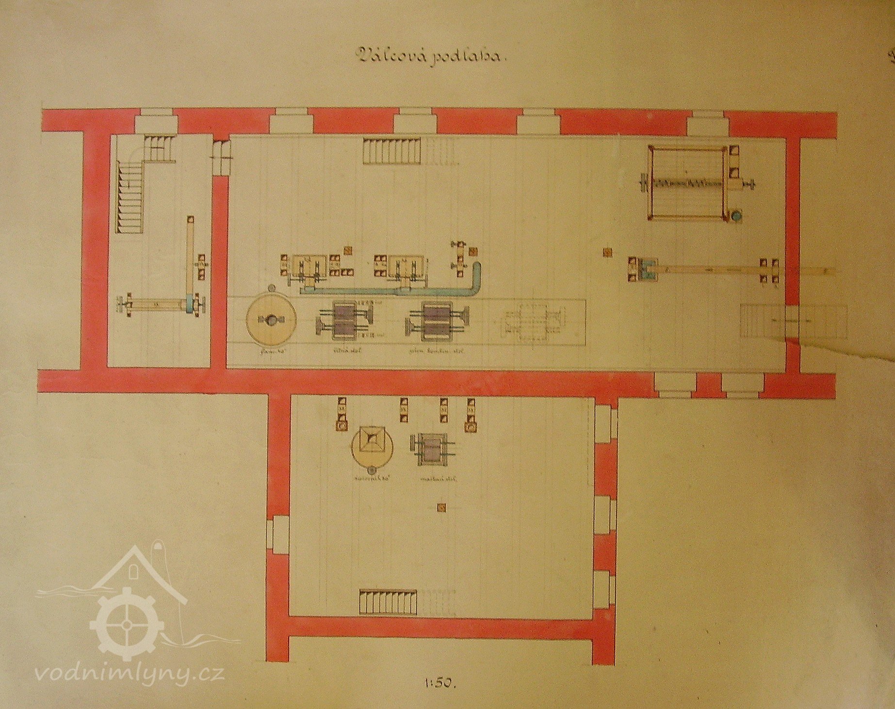 Příčný řez mlýnicí v úrovni reformy. Soukromá sbírka, před 1910, © autor neznámý