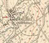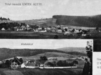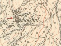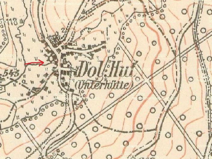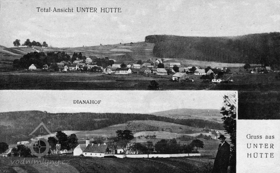 V roce 1930 se ves skládala z 50 domů, v nichž žilo 361 Němců a 21 Čechoslováků. Seznam vodních děl Republiky československé 1930 - Šedý potok – Dolní Huť 13 – Karel Wild – mlýn a šindelka – 1 kolo na svrchní vodu – 0,061-4,9-2,6.