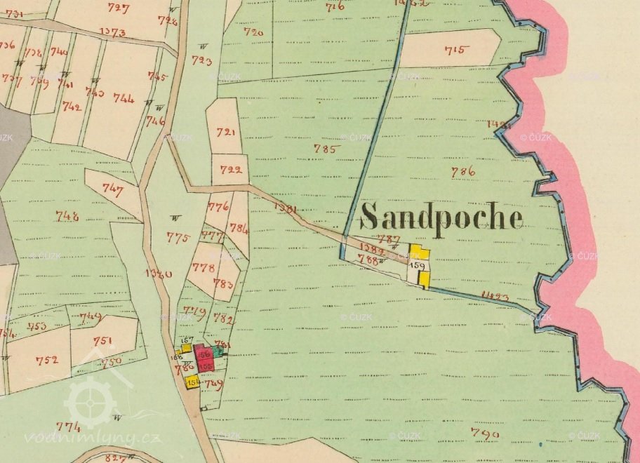 Původně stoupa na drcení křemene pro nedaleké sklářské provozy. Na II. vojenském mapování – Františkovo (1836-1852) jako Pocher.