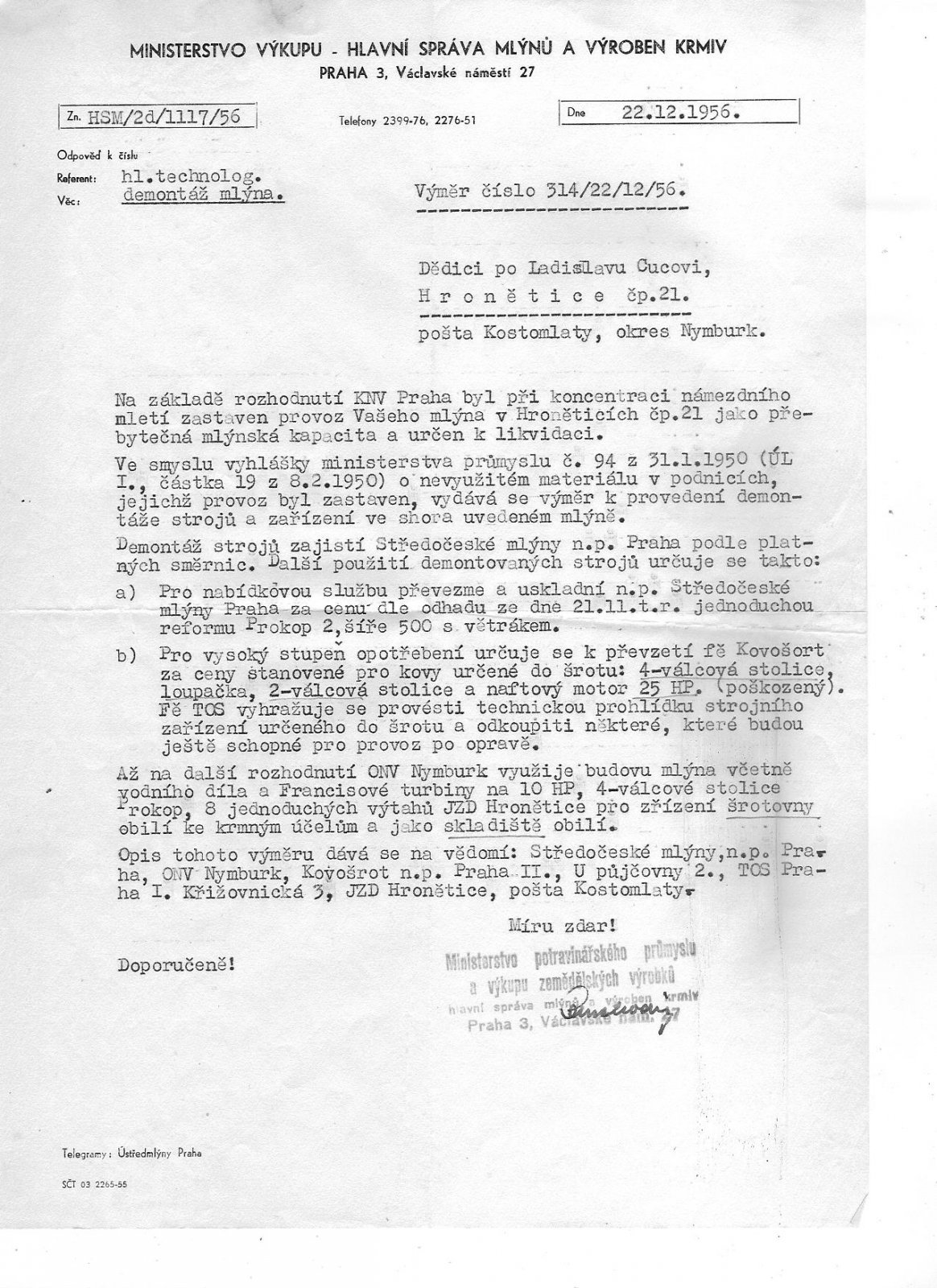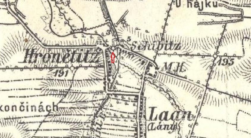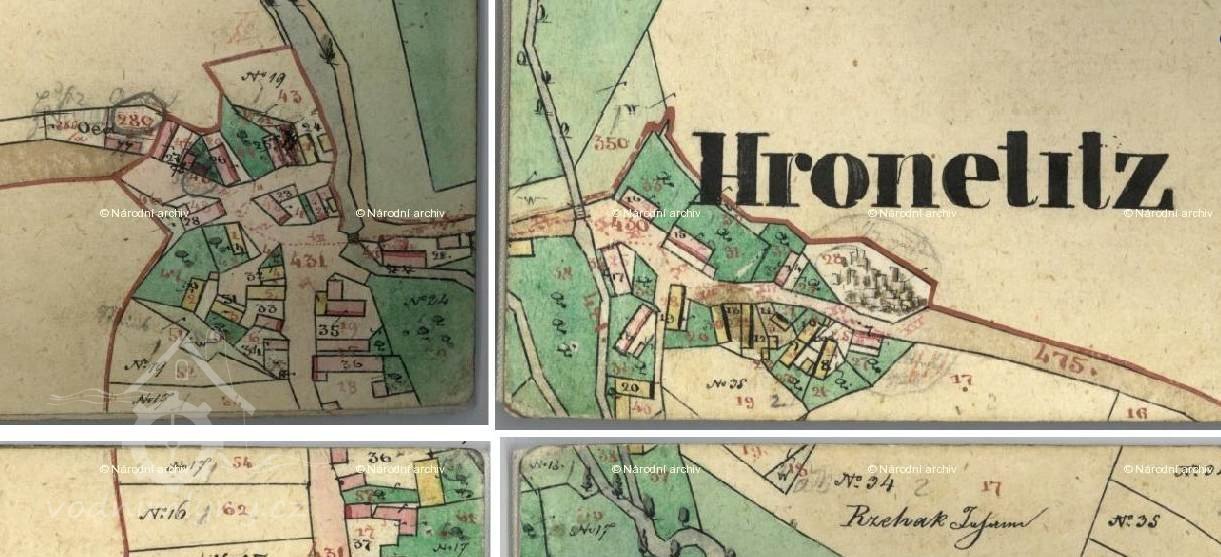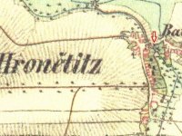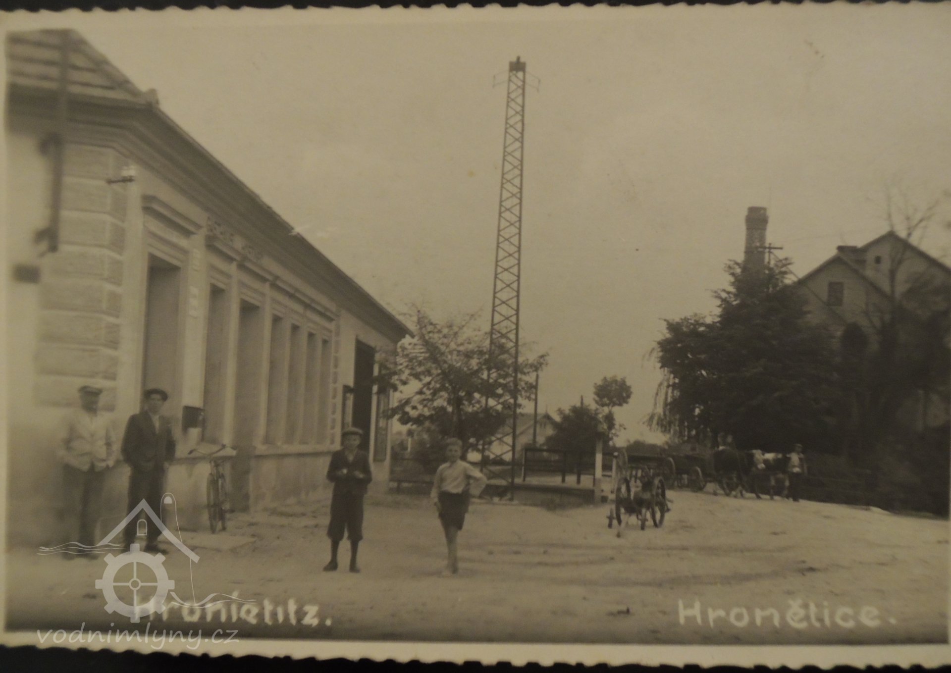 Mlýn však musel existovat již dříve. V kostomlatské kronice je zápis k 20. květnu 1678, kdy byl oddán Jakub, mlynářský v Hroněticích s Rosínou Řícelovou. (MH)