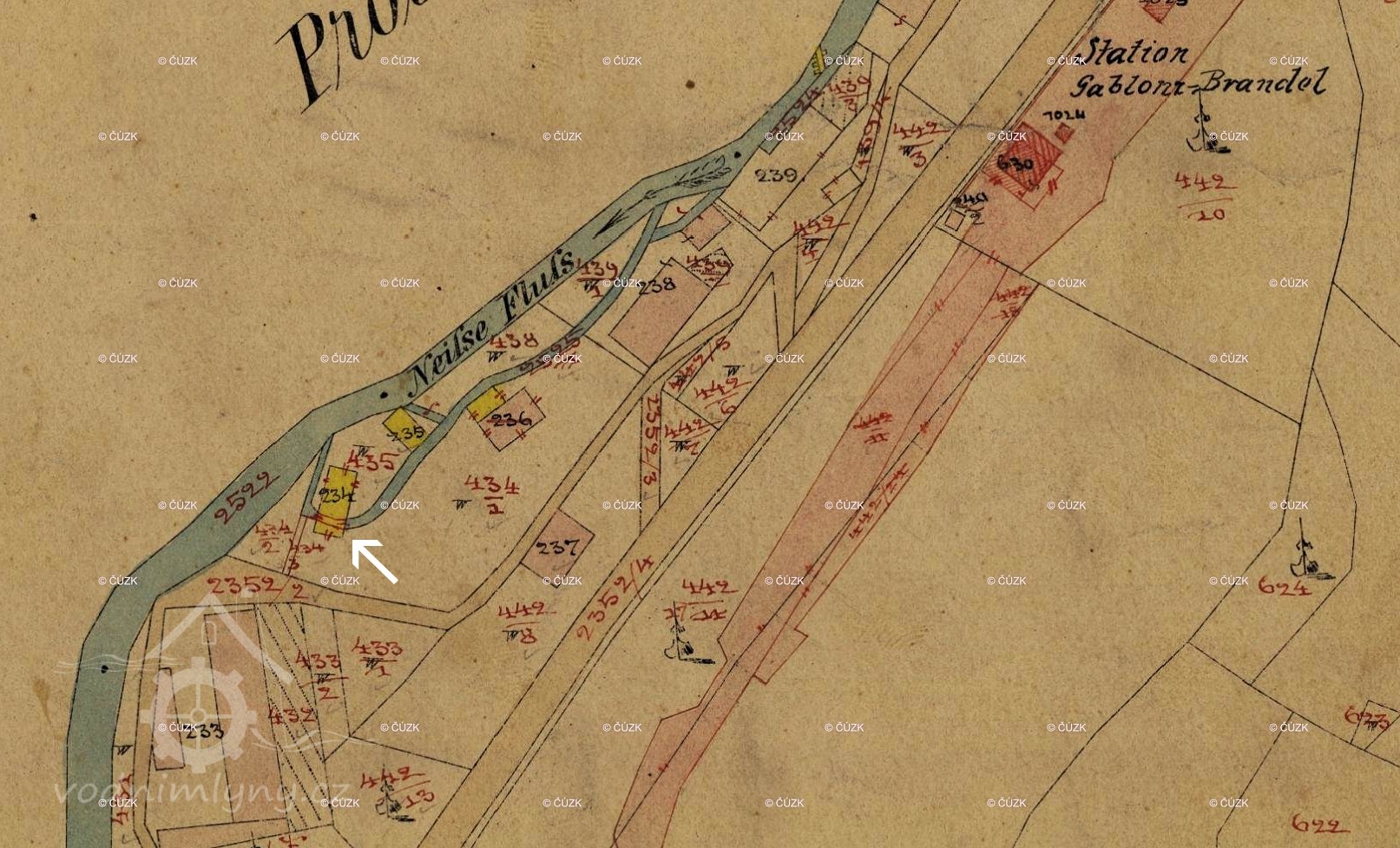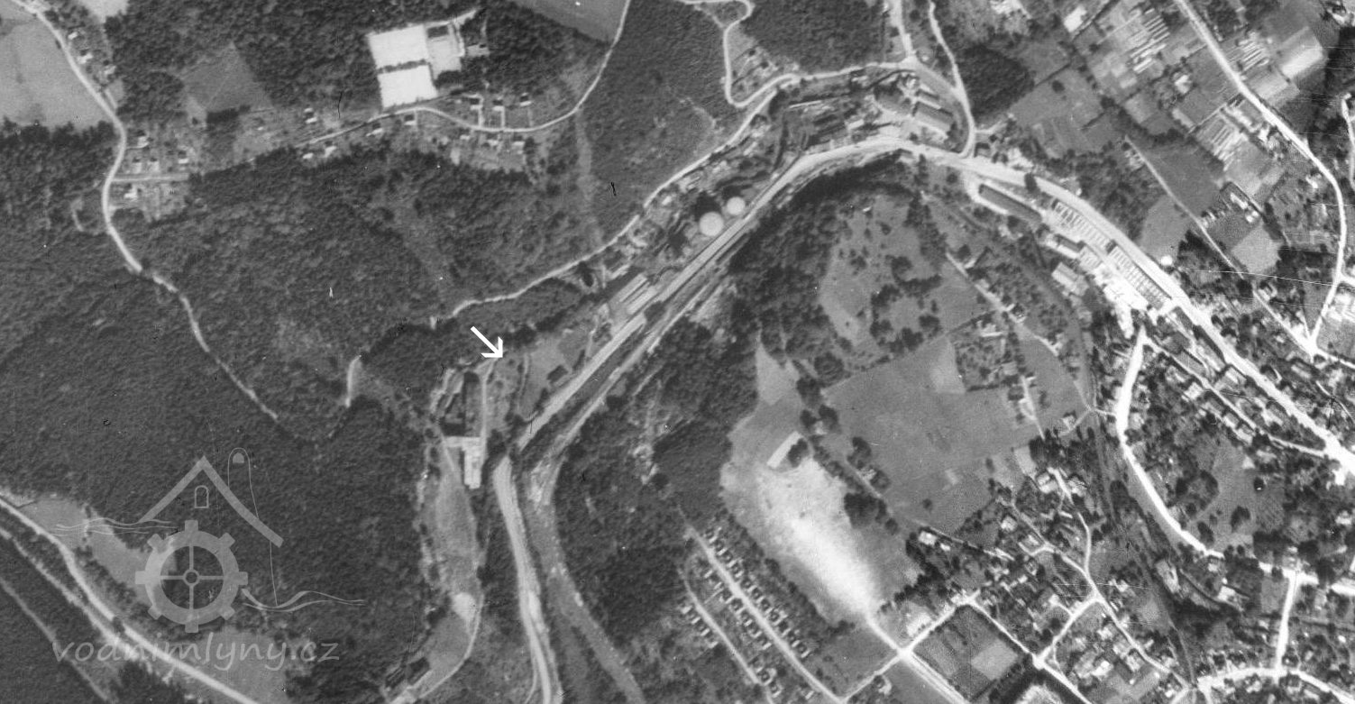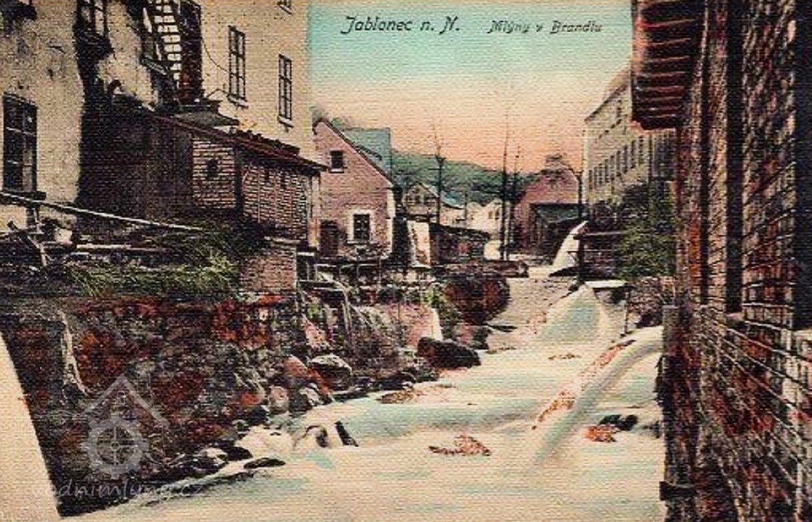 Zaniklý mlýn s pilou v industriální zástavbě na okraji Jablonce nad Nisou.