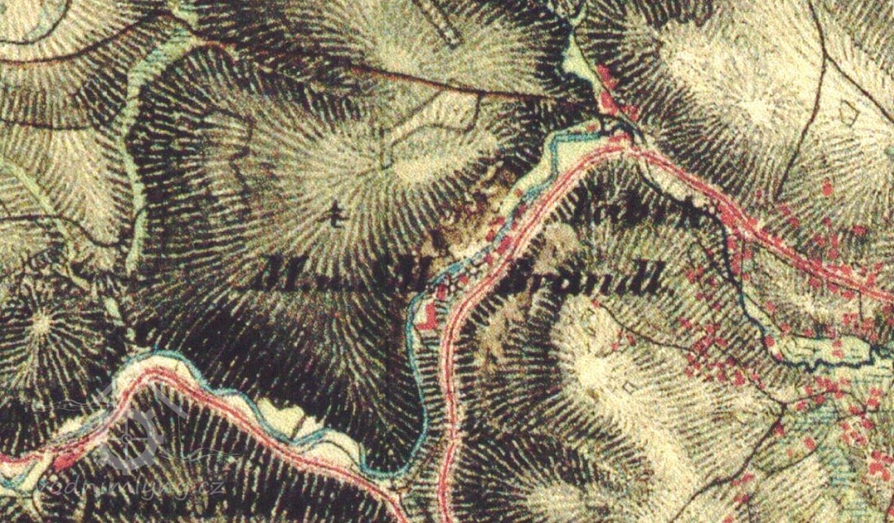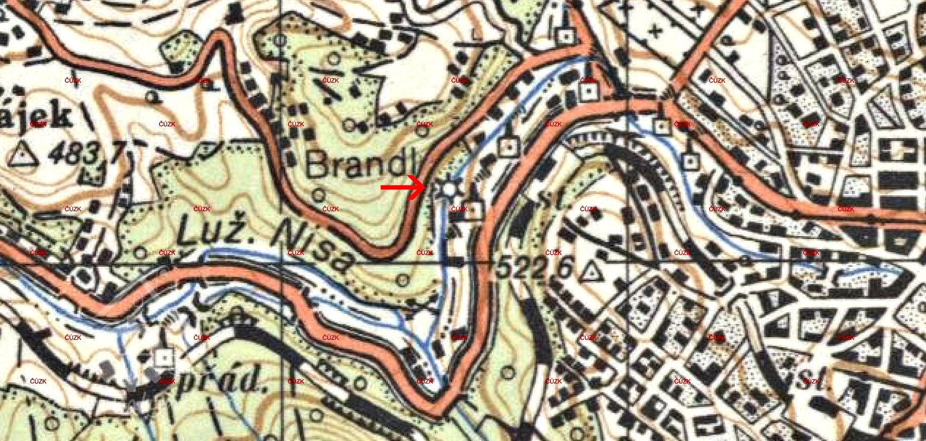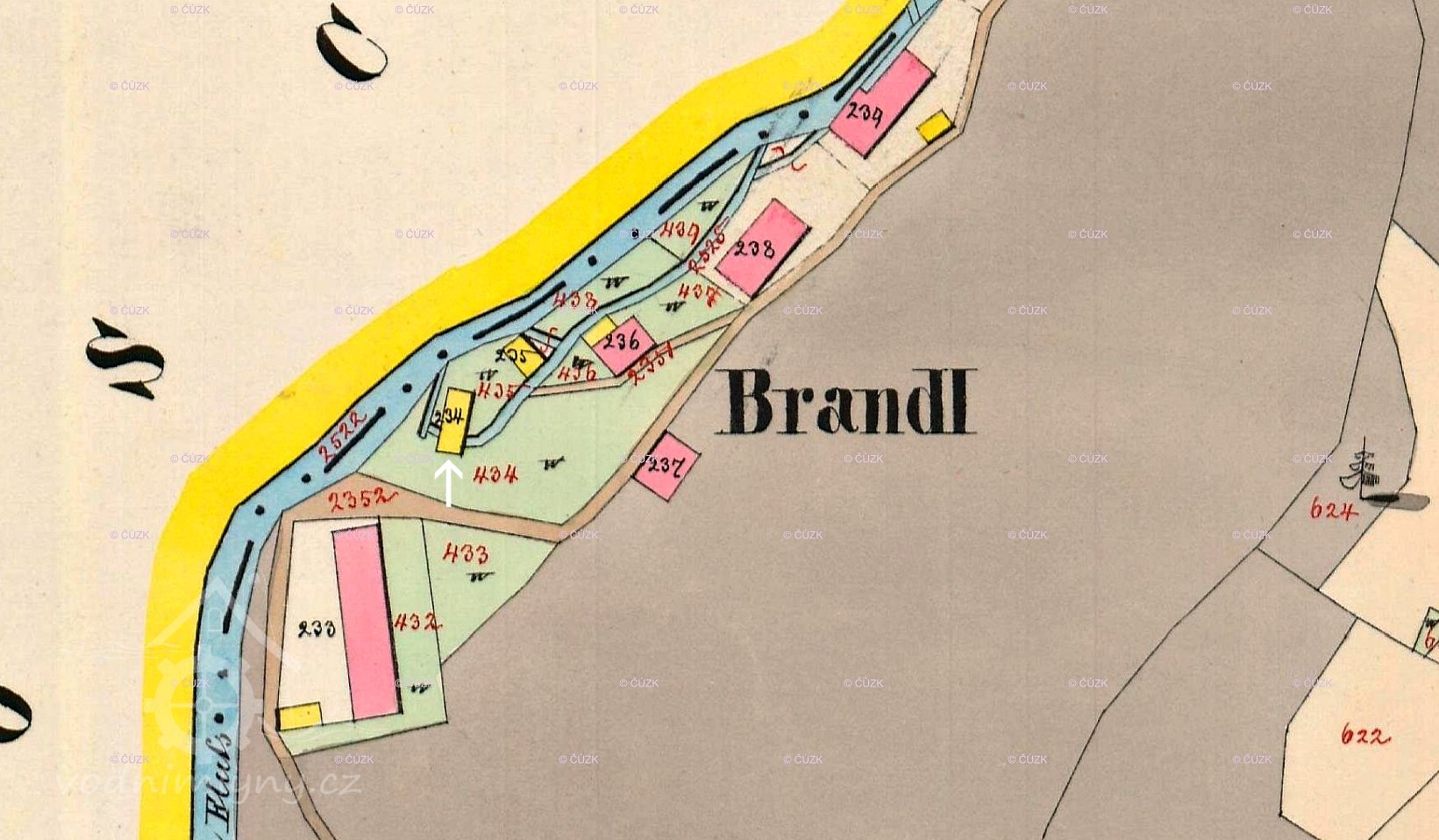 Zaniklý mlýn s pilou v industriální zástavbě na okraji Jablonce nad Nisou.