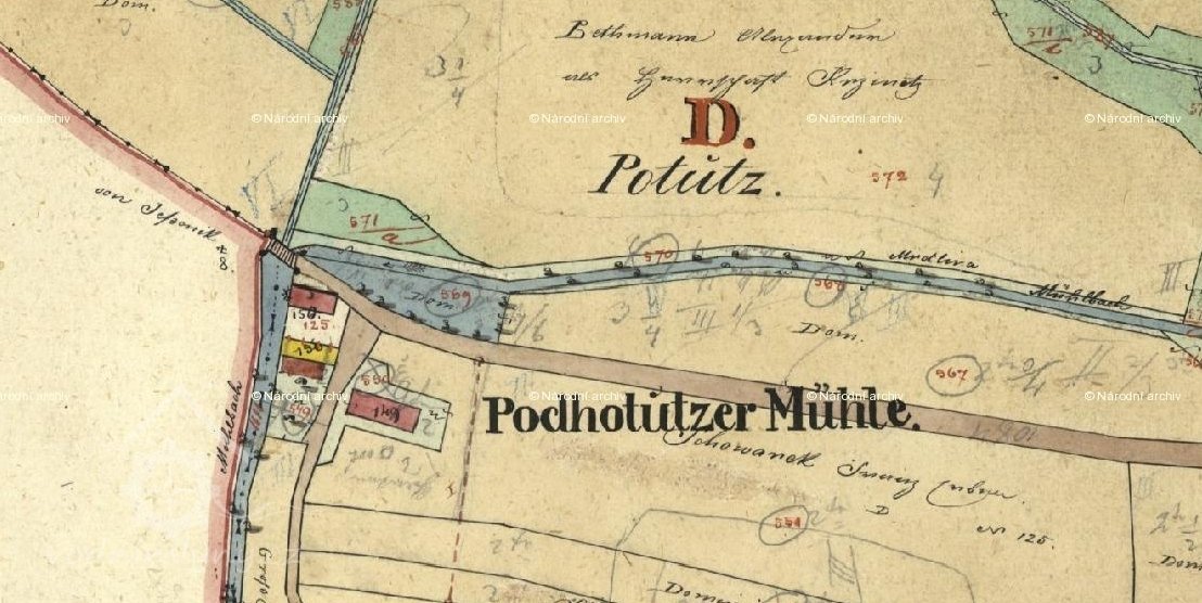 s novým mlynářem Janem Rejvoldem nevíme, ale je to možné. Snad z Jezboře se přestěhovali zpět do uvolněného mlýna v našem kraji. Po dlouhé době se na držitele mlýnů pousmálo štěstí. Ještě v roce 1786 je Jan Rejvold uváděn jako svatební družba a o rok později sám vdává dceru Claru. I jeho věkem i stářím dětí je podporována domněnka o návratu původních obyvatel Podchotučního mlýna. Nakonec se v roce 1799 ujímá nájmu mlynářův syn Václav Rejvold. Dalších zpráv o něm nemáme, ale i další historie mlýna je nedostatečně doložena.