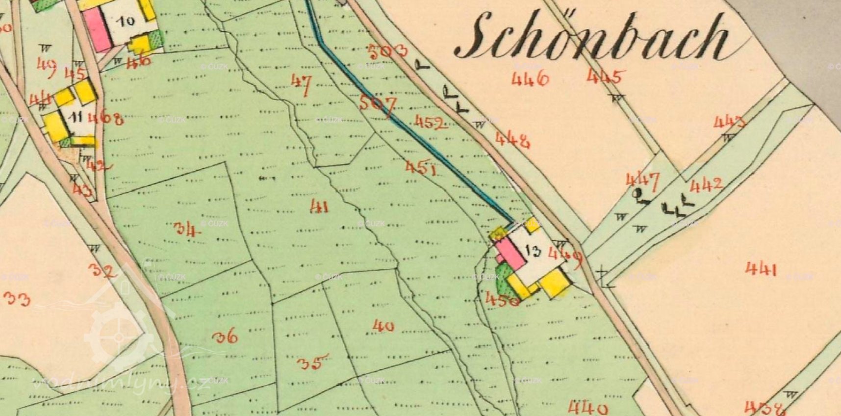 Mlýn v Dolních Lubech existoval již v polovině 17. století. Panství Luby (Schönbach) vlastnil Adam Heinrich Carol Freiherr von Pisnitz. Ve vsi Under Schönbach (Dolní Luby) je uveden mlynář Martin Prantner (39 let stár) spolu se svou matkou Catharinou Prantnerin a služkou Evou Wilfferin. Údaje se vztahují k datu 21.3.1651 a tehdy žilo v Dolních Lubech 37 osob.
