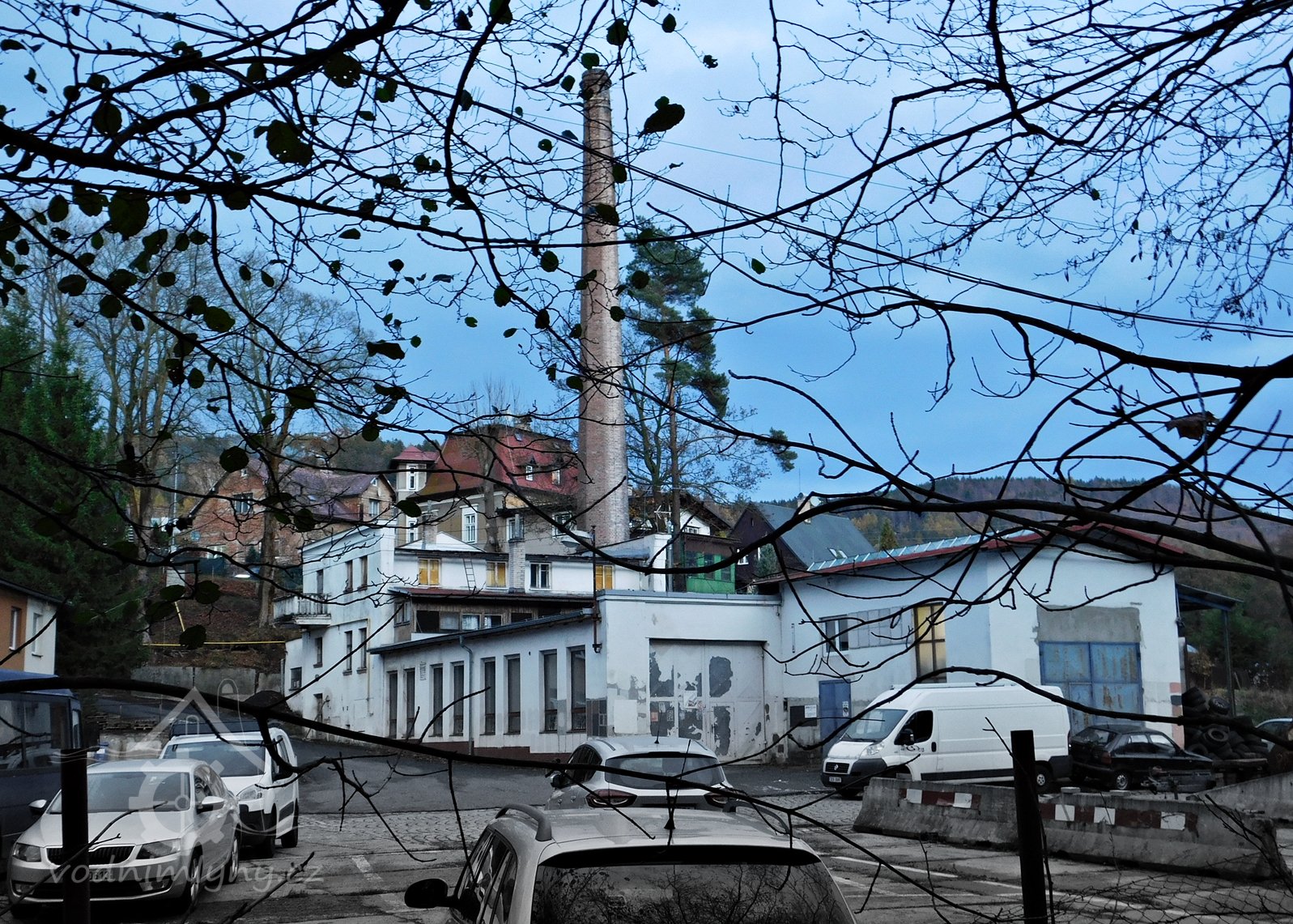 Někdejší mlýn v Nové Harcově u Liberce. Dnes převážně skladištní objekty stavebních firem.
