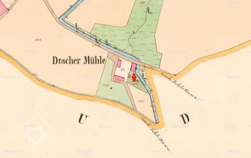 Dle stabilního katastru zde byl v roce 1842 mlynářem Johann Tuma.(MH)