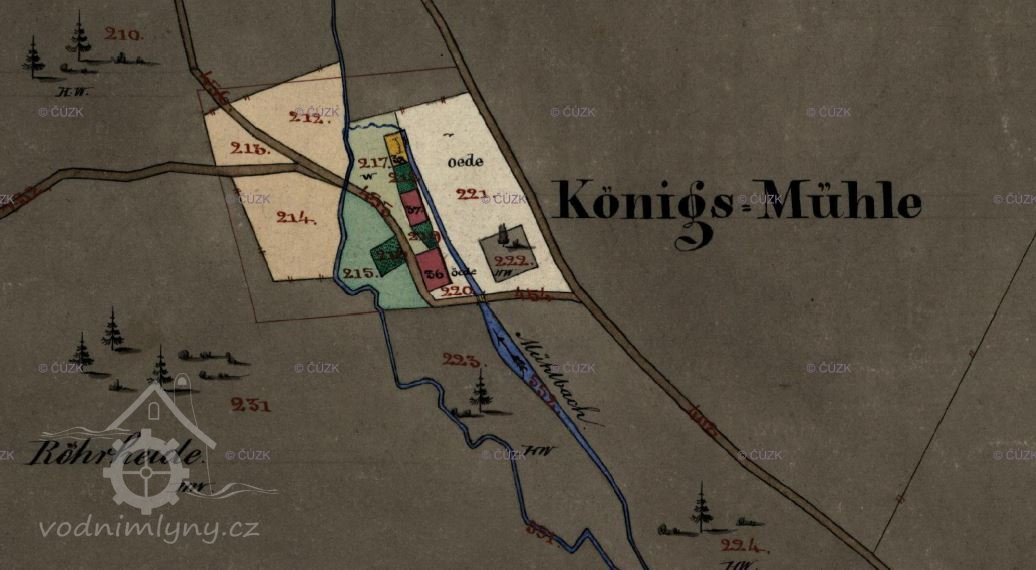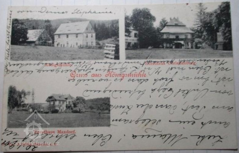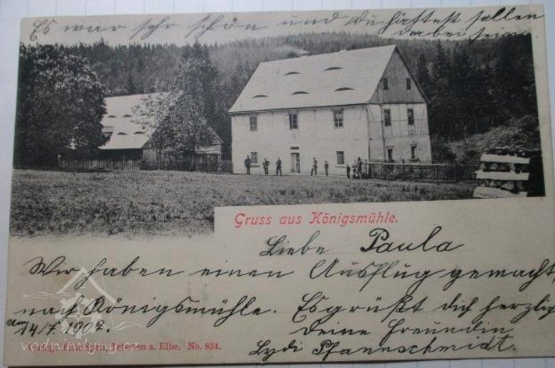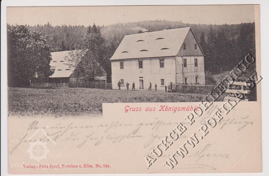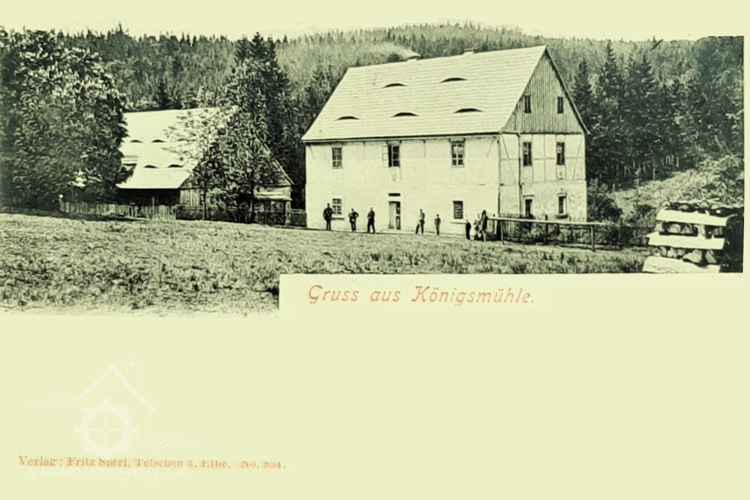 Proč se nazýval mlýn Královský?V Čechách se tehdy hodně míst jmenovalo „královský“.Například Královský les u Podmokel,jeden z pramenů potoka který teče kolem mlýna až do saského Krippenu se jmenoval Královský,východní svah lesa nad silnicí k Maxičkám se jmenoval Královský a proto se netřeba divit,když byl i tento mlýn nazván Královským.