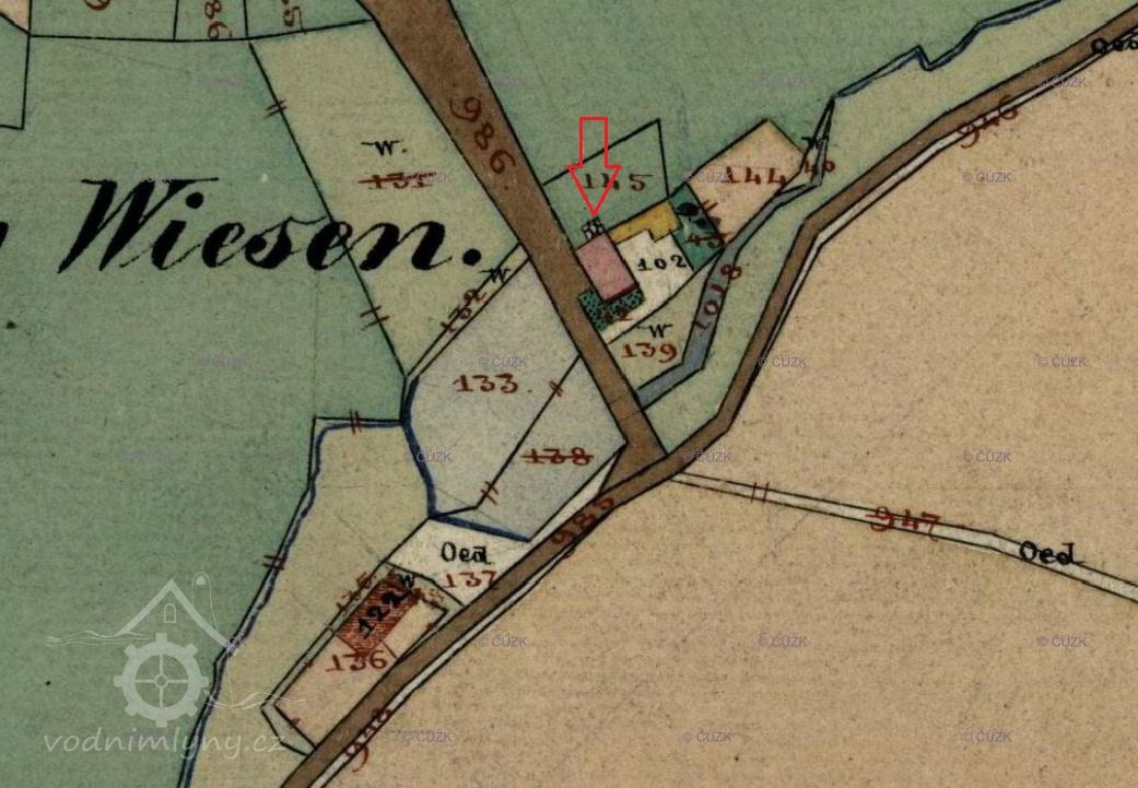 Ve stabilním katastru je v roce 1838 na mlýně čp. 71 uváděn Johann Teinert.