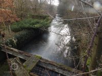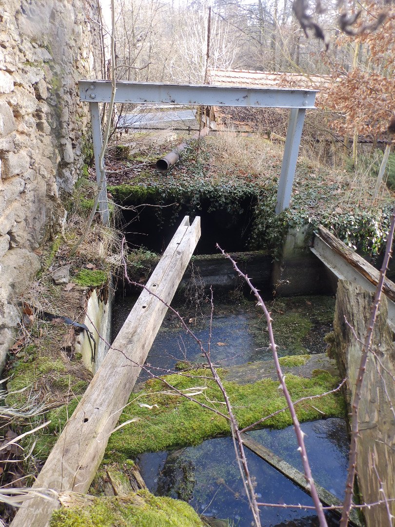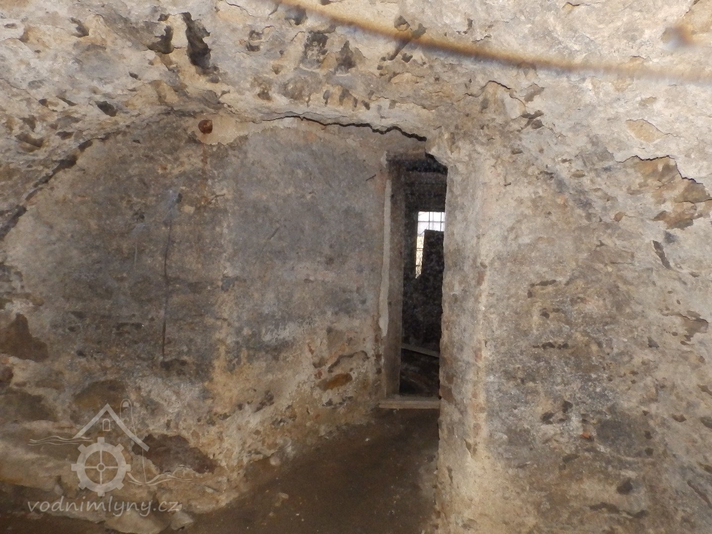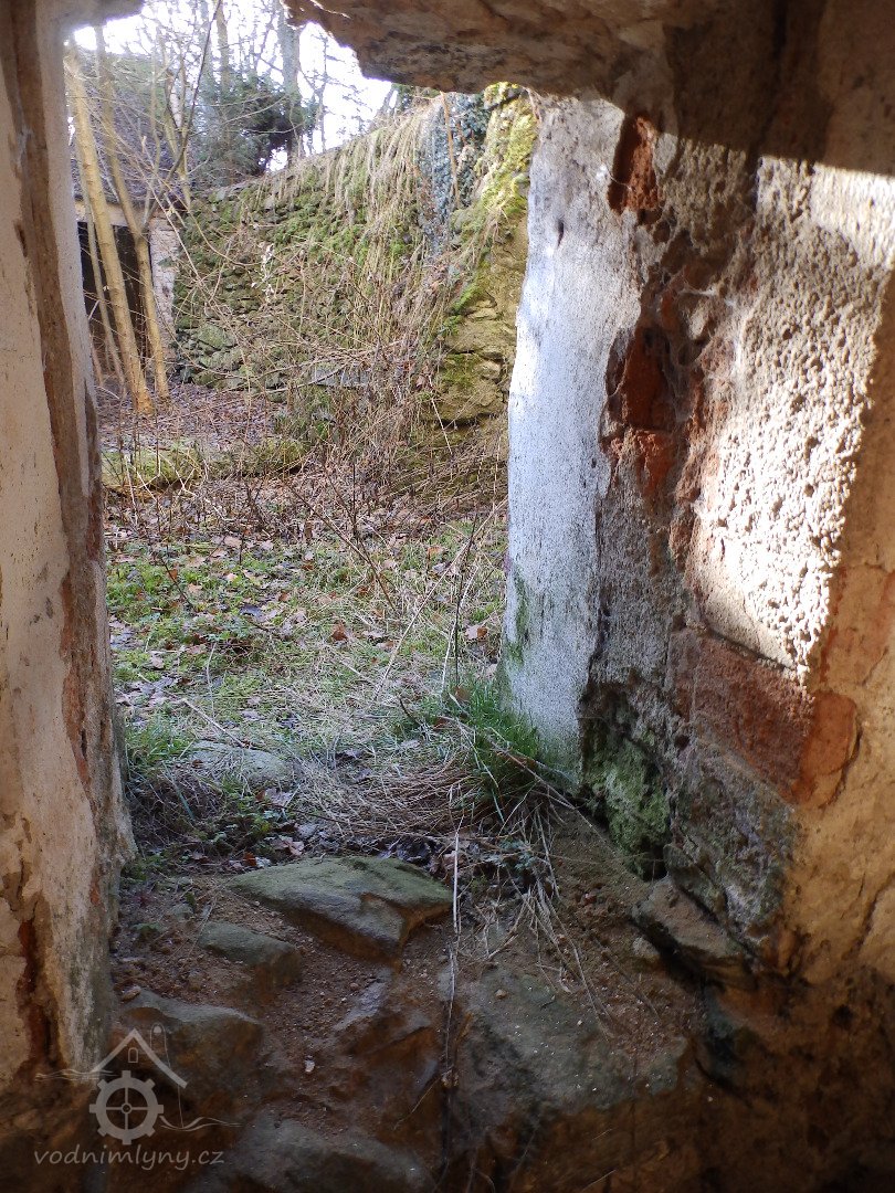 Voda vzdouvána pevným zděným jezem, z jezu volně vtékala do náhonu dlouhého 370 m, hlubokého kol. 1 m, širokého cca 2,5 m. Pod vantroky se náhon rozšířil a vytvořil dlouyhou a úzkou mlýnskou nádržku. Betonové vantroky byly rozděleny železným brlením na 2 díly, závodním stavítkem se voda pouštěla na mlýn z mlýnoice jednoduchým ručním mechanismem. Pomocí betonového kluzu 30/85 cm voda padala na kola. Spodní stoka od mlýna byla 70 m dlouhá, zčásti od mlýna přemostěná a zčásti otevřená.