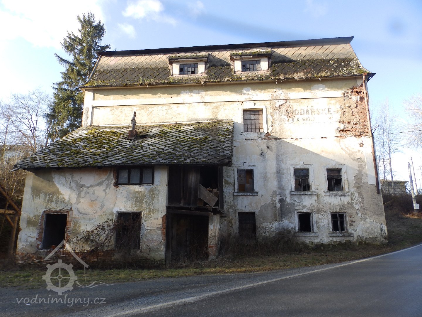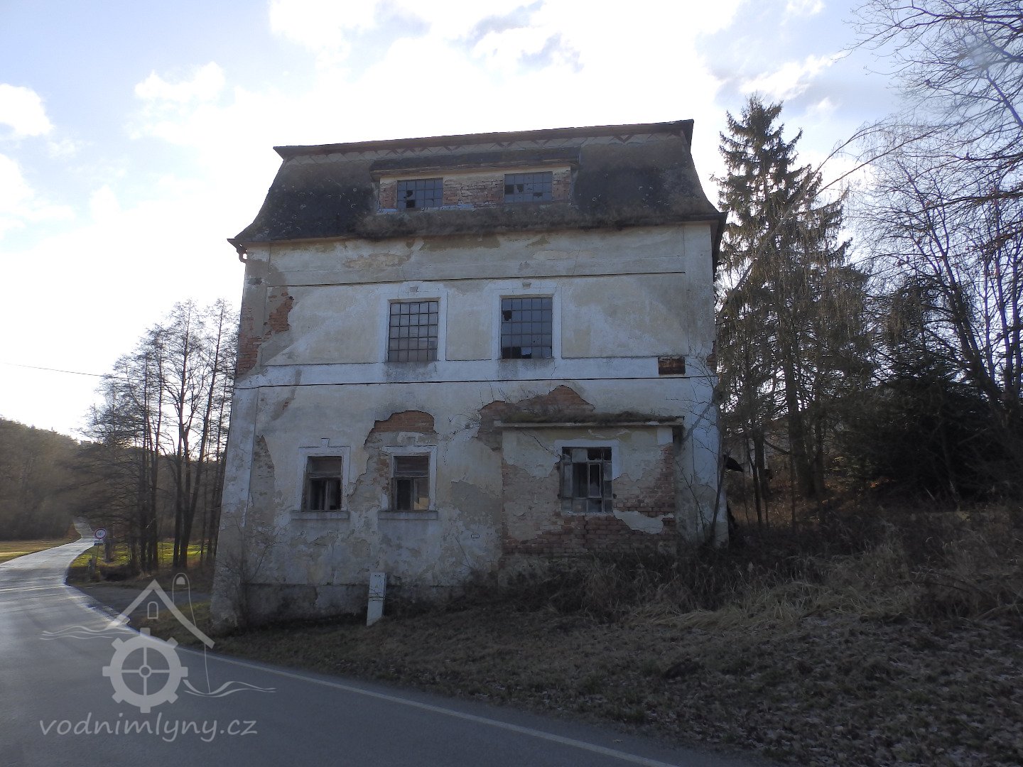 Mlýn zobrazen již na mapách I. vojenského mapování. V současné době v havarijním stavu. Na omítkách pozůstatky nápisu Hospodářské, mlýnské, strojní a skladištní družstvo. Dvorem mlýna prochází silnice, na jedné straně je mlýnice, na druhé obytná a hospodářská budova. V mlýnici dochovány trosky zařízení (loupačka, vysévač, reforma aj.).