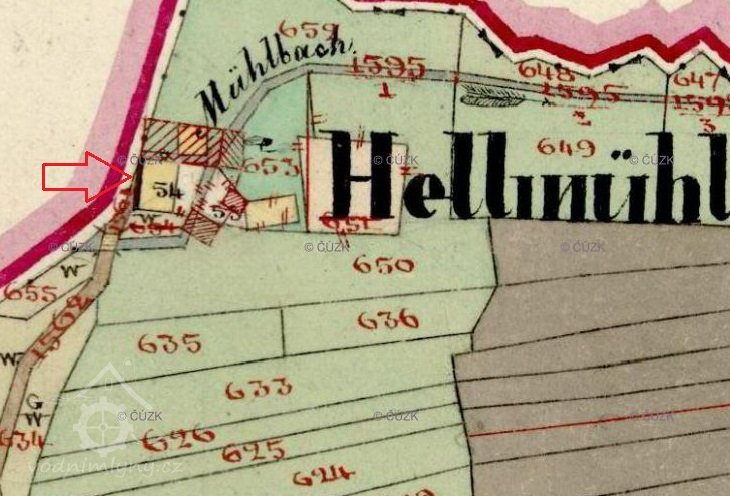 Na mapách stabilního katastru z roku 1838 je mlýn vyobrazen jako nevelká dřevěná stavba s jedním kolem. Jako mlynář je zde uváděn Johann Seckel.