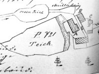 1838 – u mlýna byla pila, objekty mlýna a pily stály naproti sobě a byly napájeny vodou ze společné vodní nádržky nad mlýnem. Ve stabilní katastru je jako držitel mlýna s pilou k roku 1838 uváděn Mathias Schmutzer.