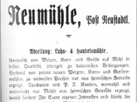 1789 - Joseph Himmel s manželkou Marií, rozenou Mayer, v únoru 1789 se jim na Neumühle, který měl tehdy čp. 32, narodila dcera Susanna, v březnu 1792 následoval syn Martin, v září 1794 dcera Johanna, v dubnu 1799 další dcera Margaretha a v srpnu 1800 syn Johannes.