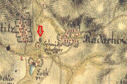 Na samotě cca 300 vzdušnou čarou západně od obce Radochovy