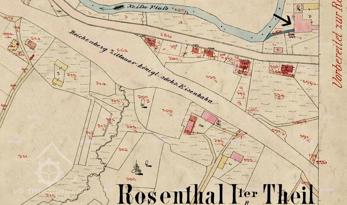 Bývalý mlýn v Růžodole, dnes součást městské zástavby (Liberec XI - Růžodol I). Komplex mlýnských budov je upraven a využíván k obchodním účelům.