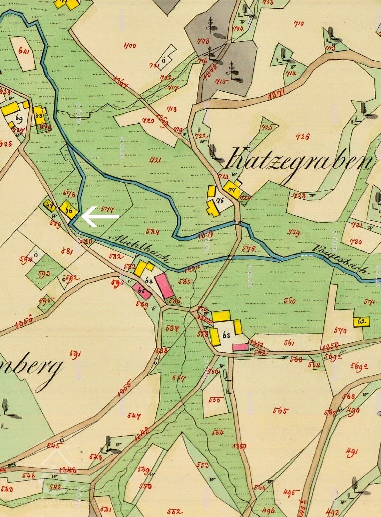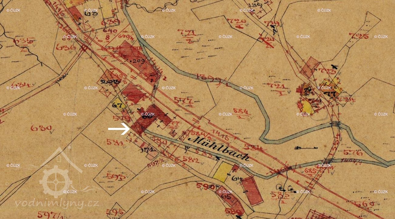 Zaniklý mlýn v intravilánu obce. Na mlýništi stojí obytný domek.