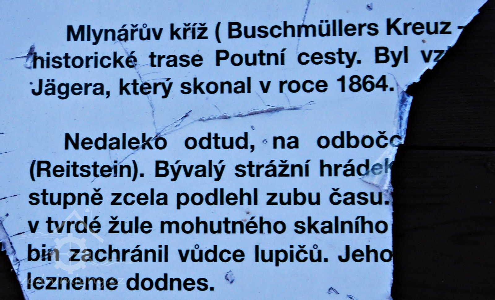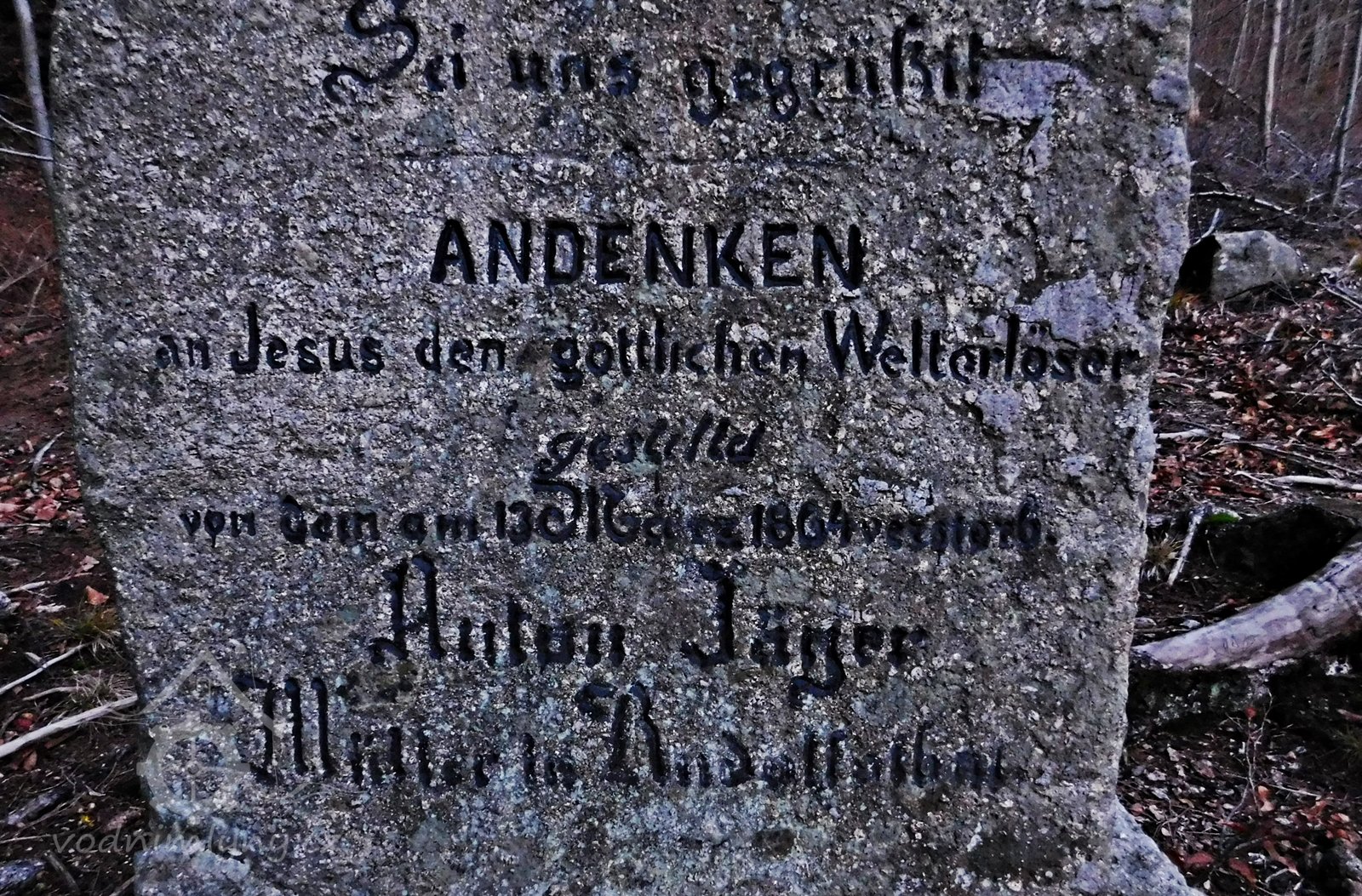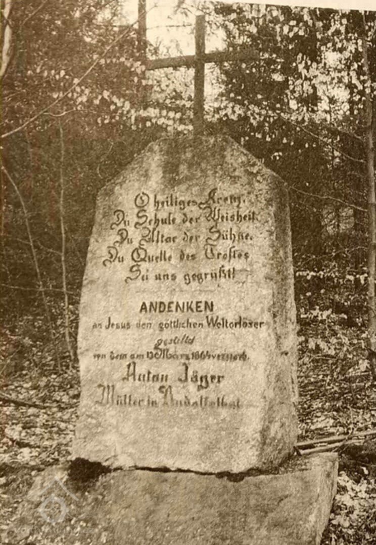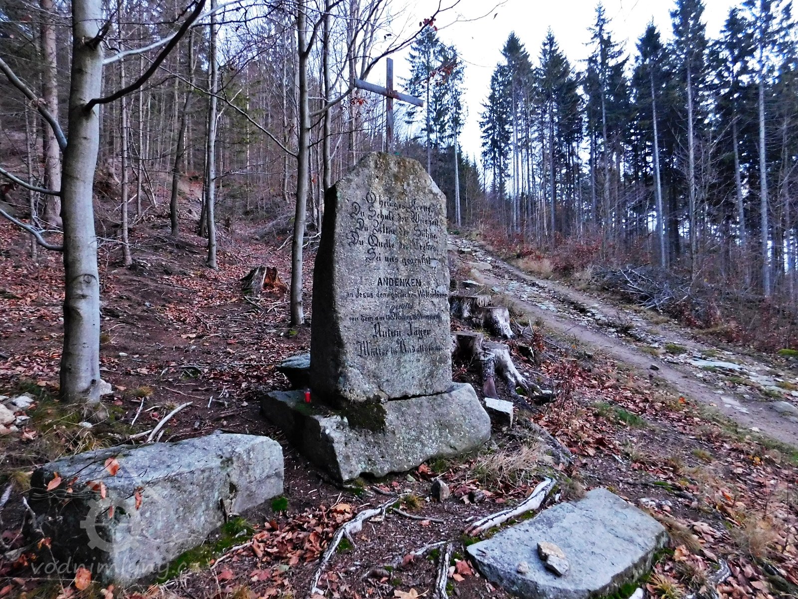 · V Jizerských horách u křižovatky cest na Žulovém svahu nad údolím Černé Nisy stojí kříž. Připomíná místo, kde 13. března 1864  zemřel mlynář Anton Jäger z Rudolfovského mlýna (někdy také Buschmühle - podle německého jména obce), připomínaného v údolí Černé Nisy již v 17. století.