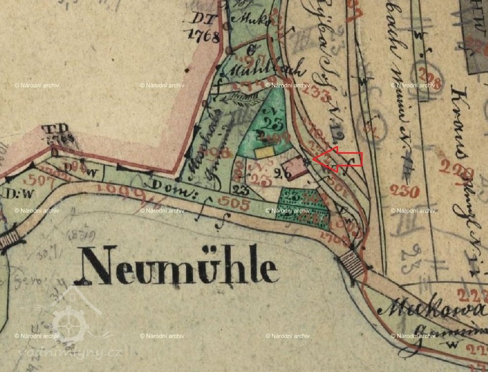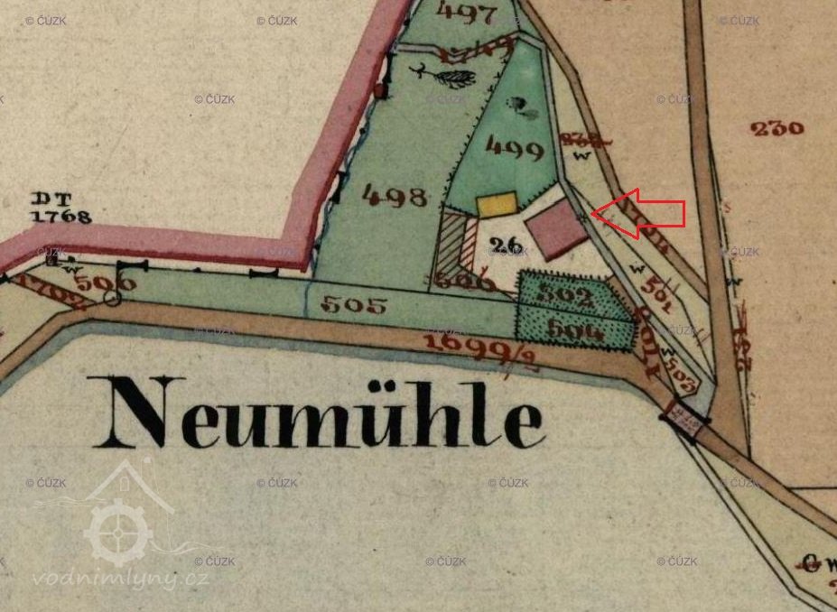 Meßhals 1 und dann Meßhals 23 und wird „Neumühle“ genannt. Die Standesfälle sind in der Pfarre Prostibor (Prostiboř) und