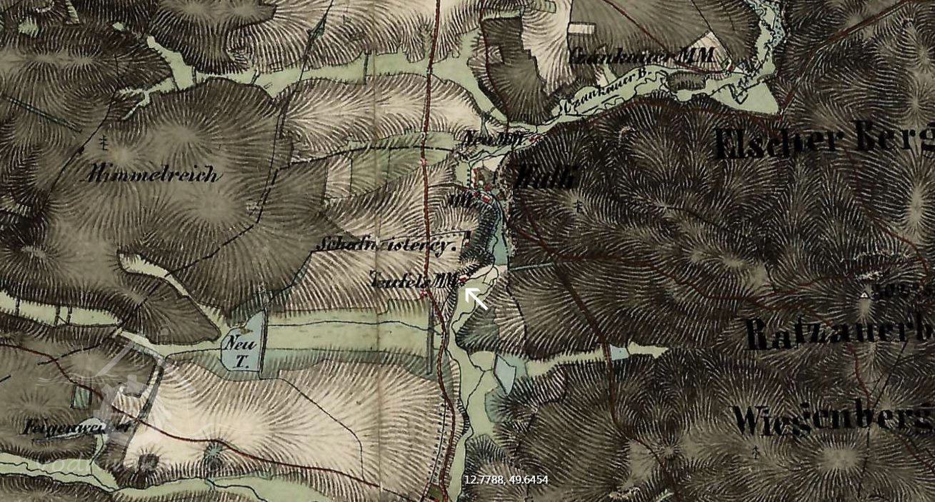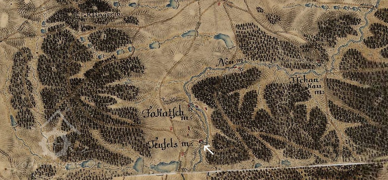 Již roku 1608 je v matrikách zmiňována mlynářka z Teufelsmühle.