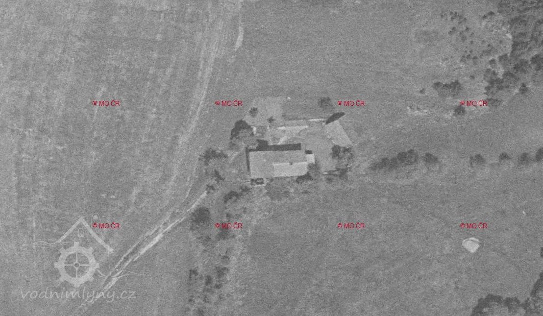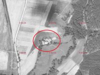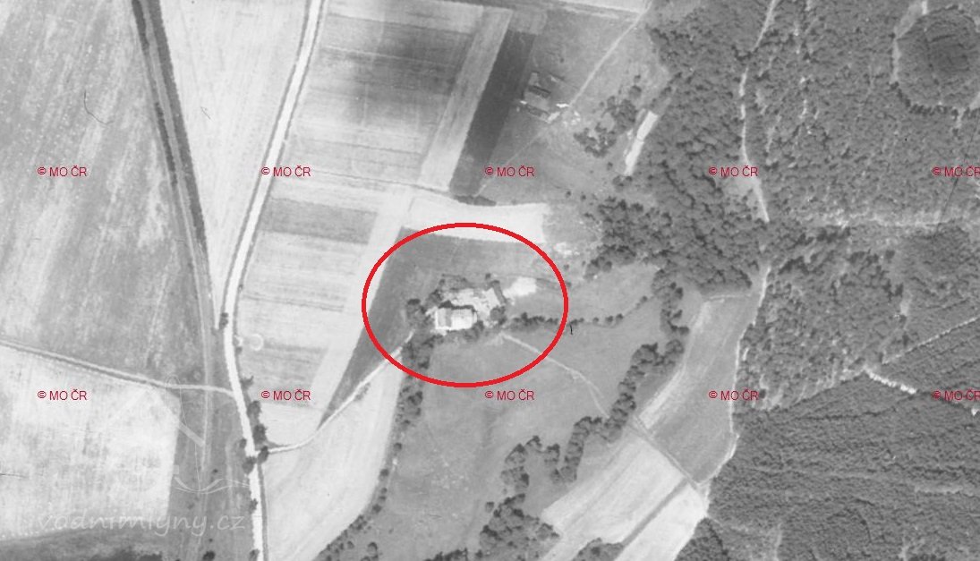 údajně vyhořel již 1950 (na leteckém snímku 1959 je však stále zachovalý)
