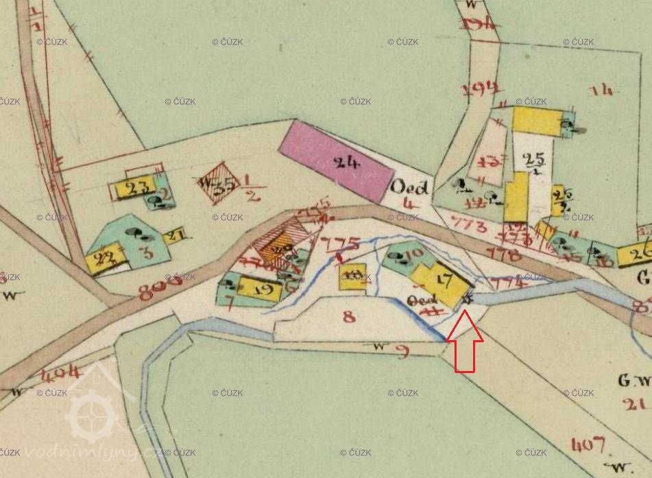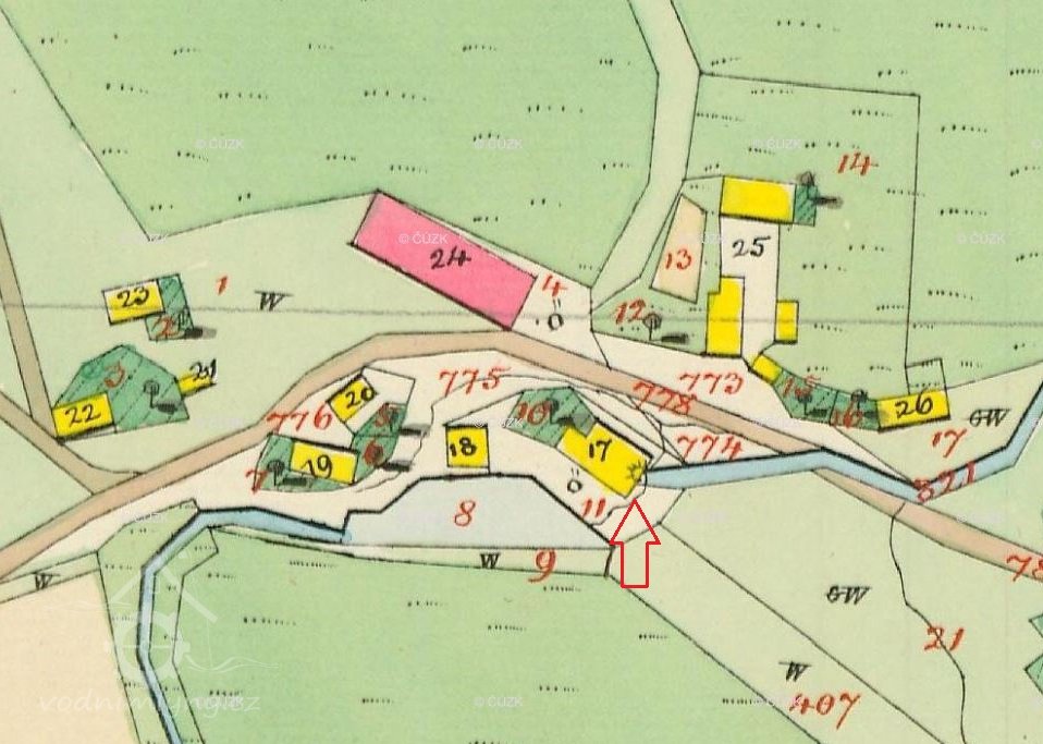 1930 – 1 vodní kolo na vrchní vodu, hltnost 0,05 m3/s, spád 5 m, výkon 2,16 HP